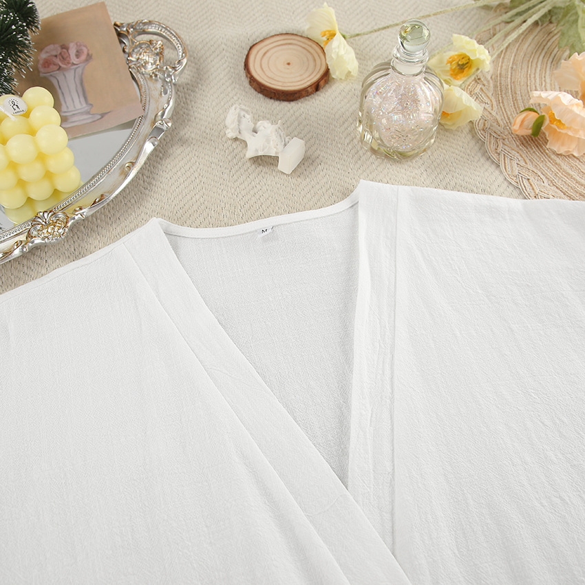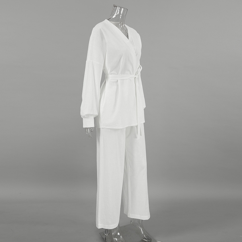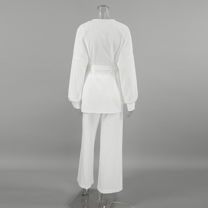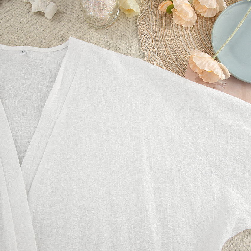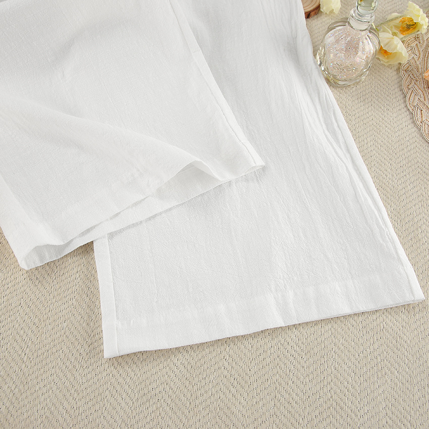 Autumn Cotton Linen Pajamas Two Piece Set Cardigan Long Sleeve Pants Ladies Homewear