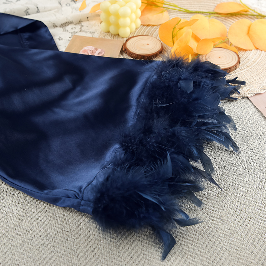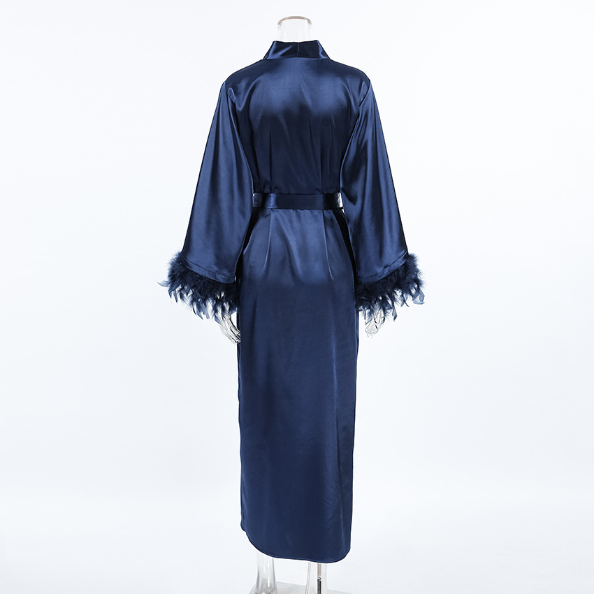 Autumn Satin Cardigan Loose Long Sleeve Nightgown Women Comfortable High End Feather Sleeve Home Wear