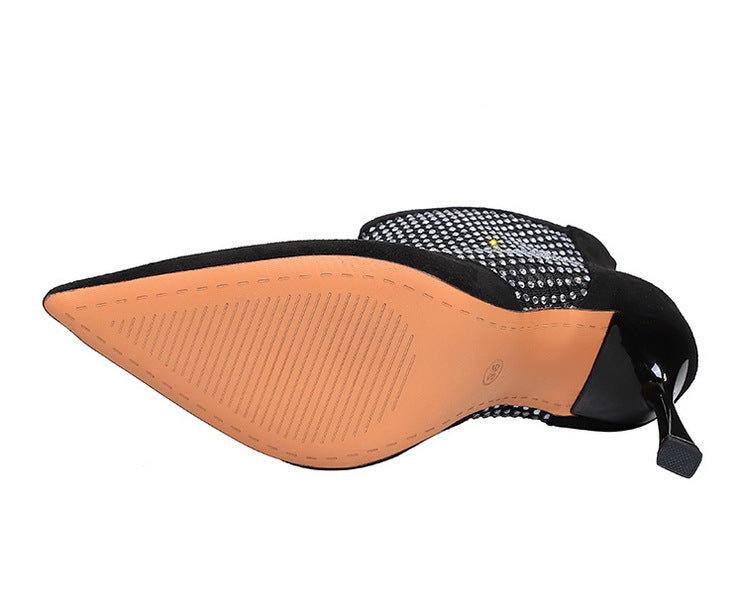 High Heel Boots Women Suede Stitching Mesh Rhinestone Back Zipper Mesh Boots Stiletto Pointed Toe Thin Boots
