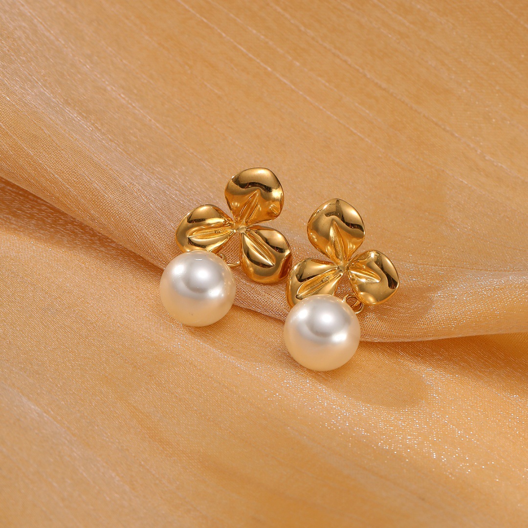 Light Luxury Titanium Steel Pearl Floral High Grade Earrings Simple Elegant Exaggerated Design Stainless Steel Studs