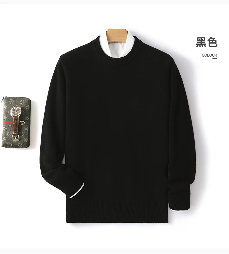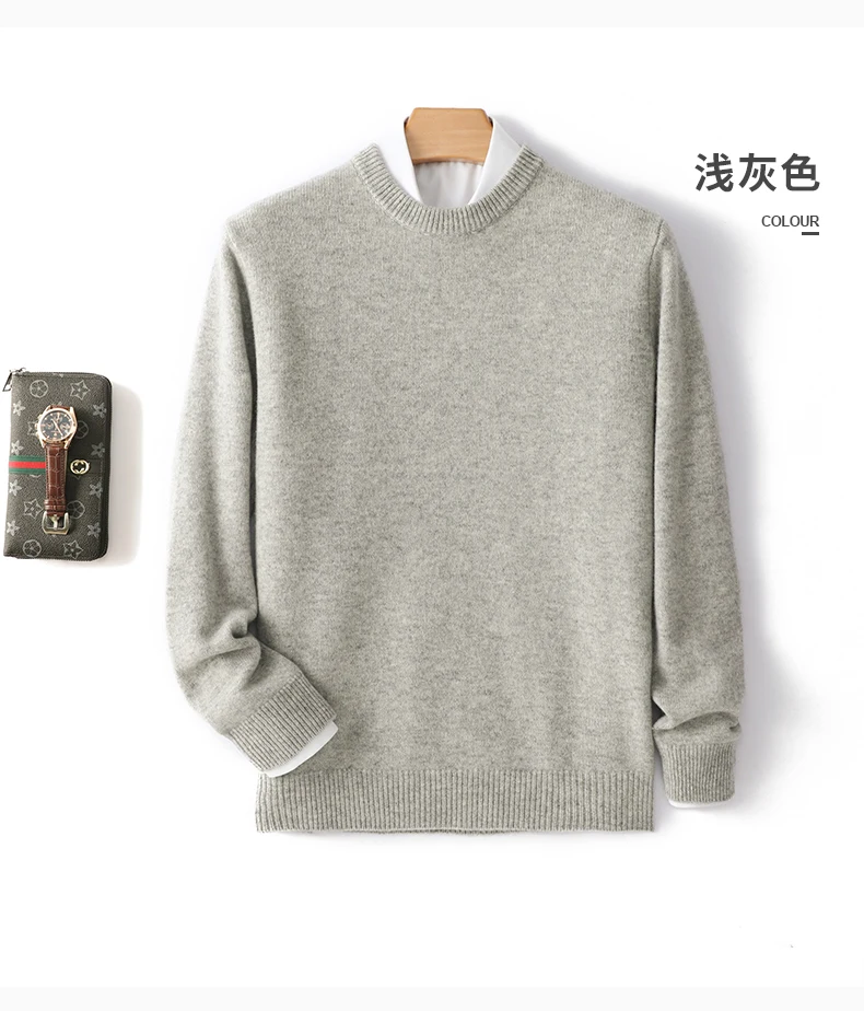 Men's 100% Pure Wool Cashmere Sweater O-Neck Pullover Knit Sweater Autumn and Winter New Long Sleeve High-End Jumpers Thick Tops