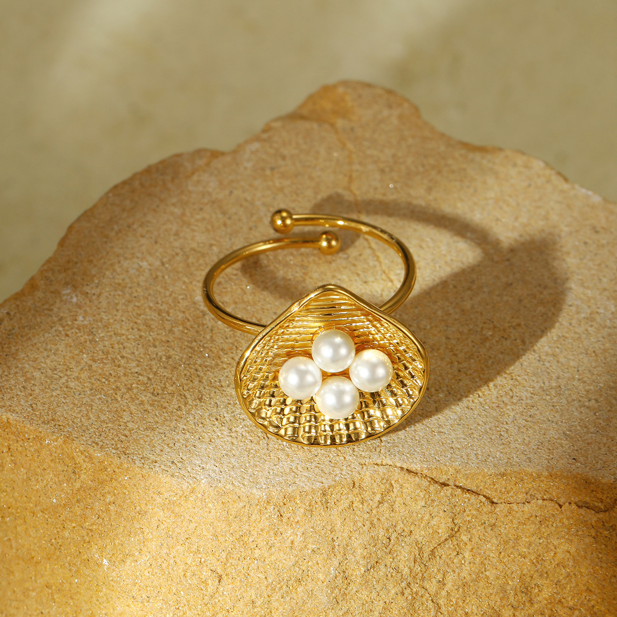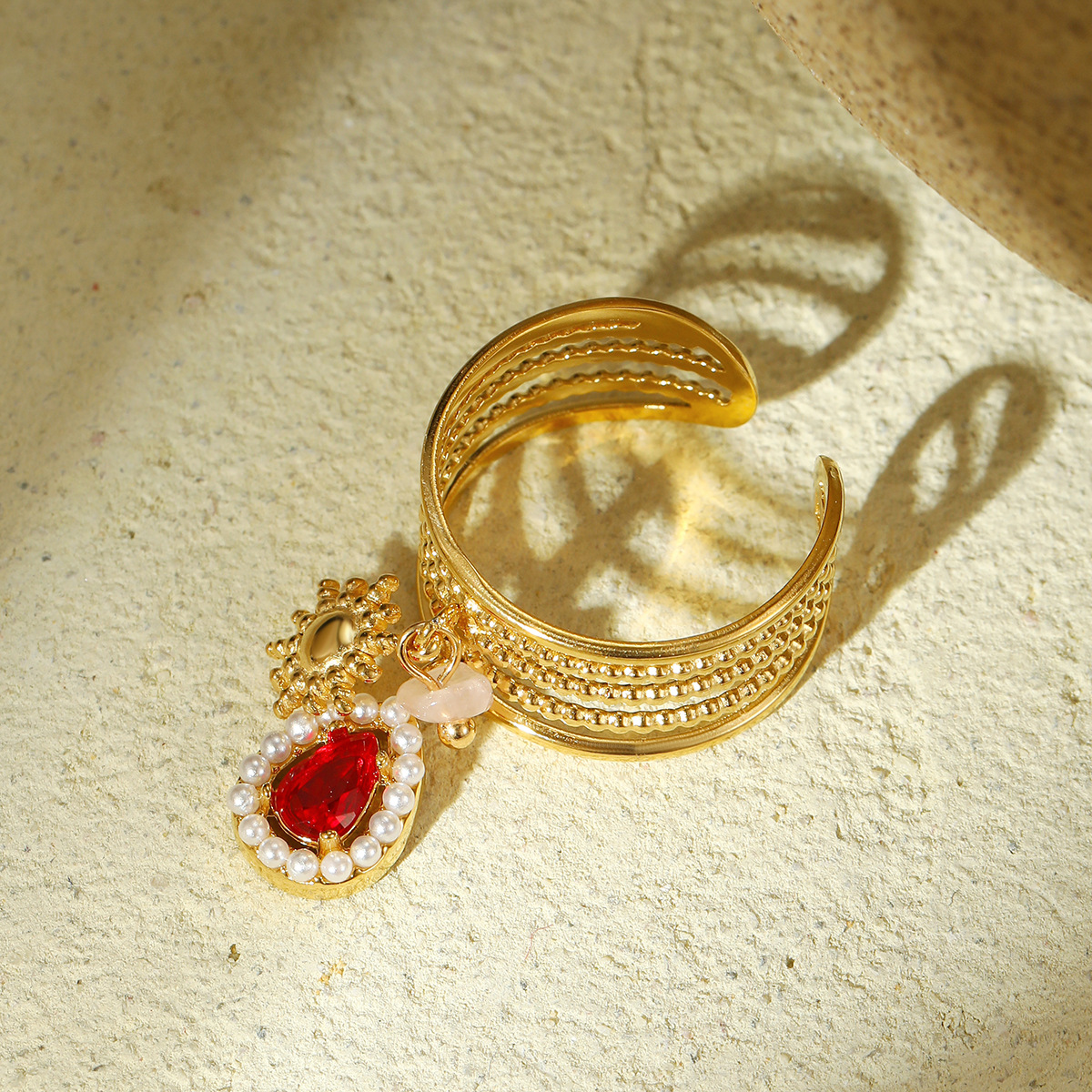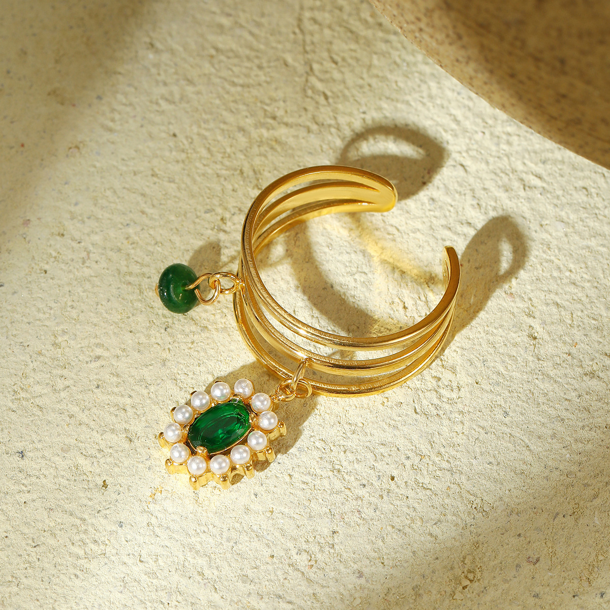 Natural Stone Design Open Stainless Steel Ring Pearl High Grade Titanium Steel Bracelet