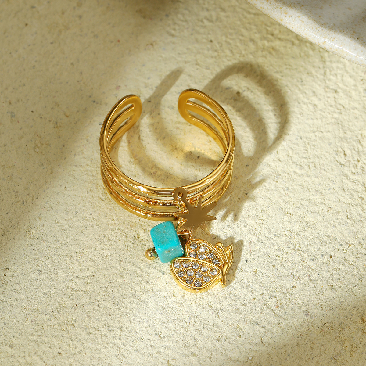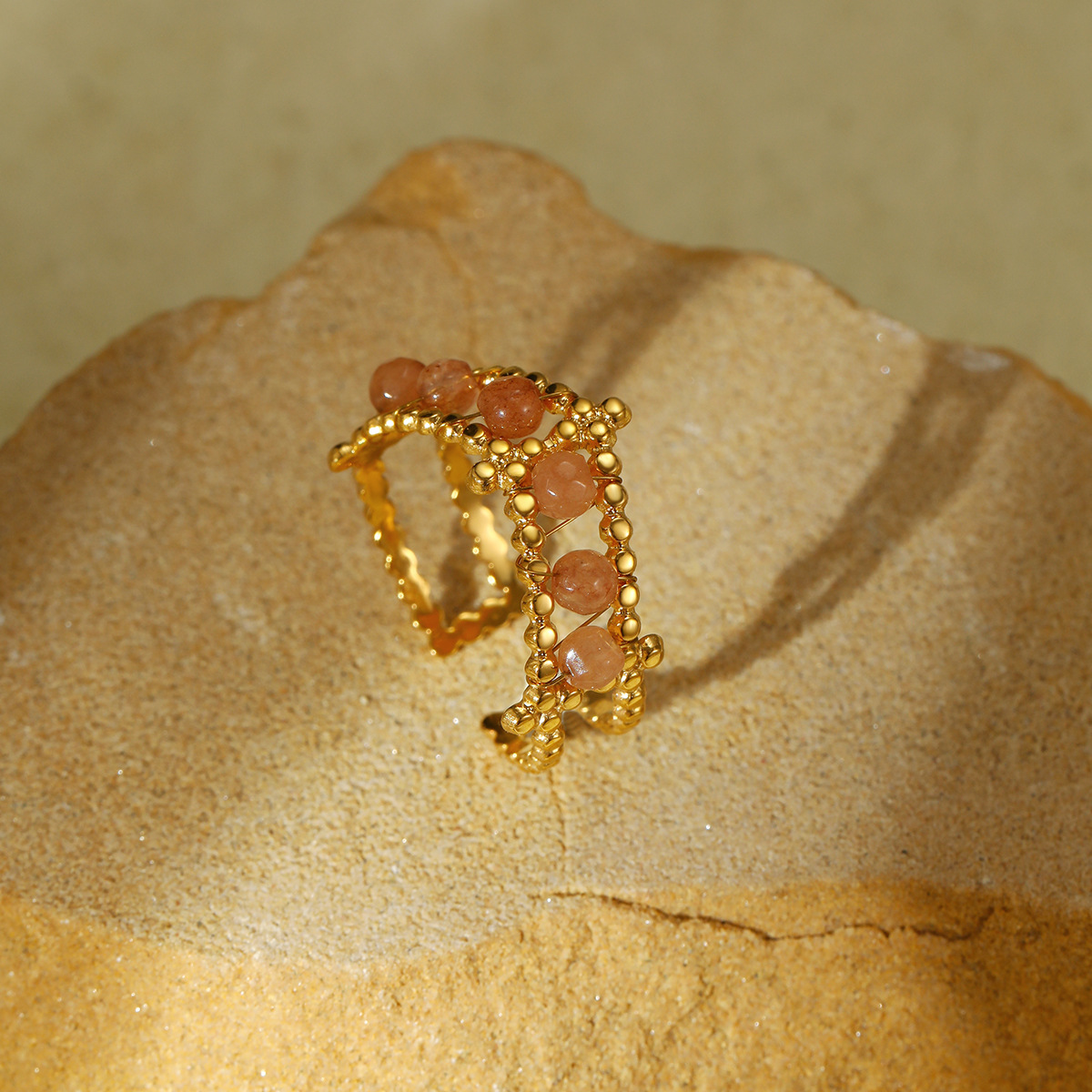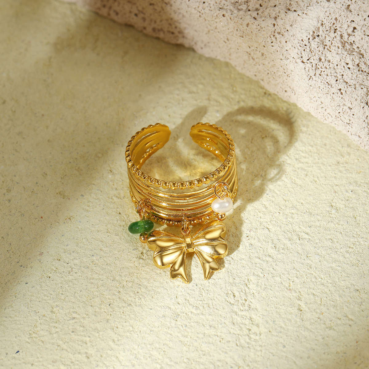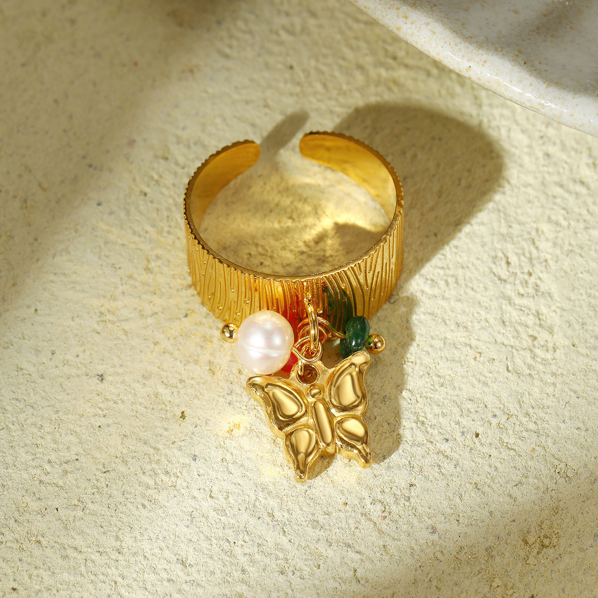 Natural Stone Design Open Stainless Steel Ring Pearl High Grade Titanium Steel Bracelet