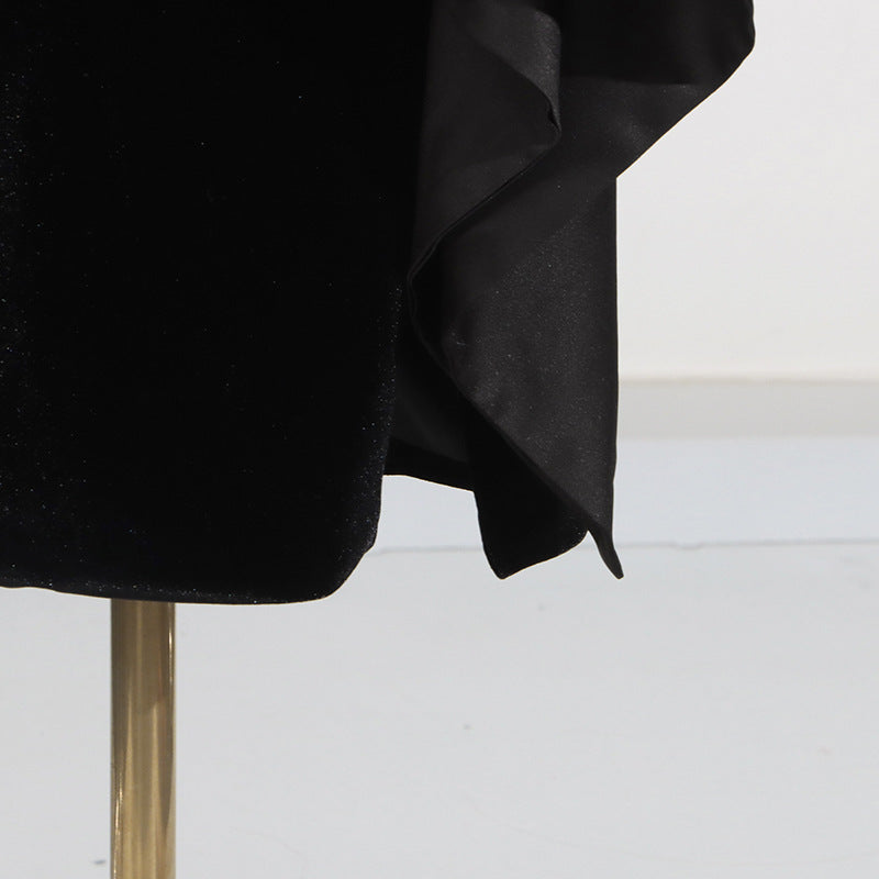 Sexy Tube Top Dress Black Elegant Irregular Asymmetric Design Sleeveless Dress Women