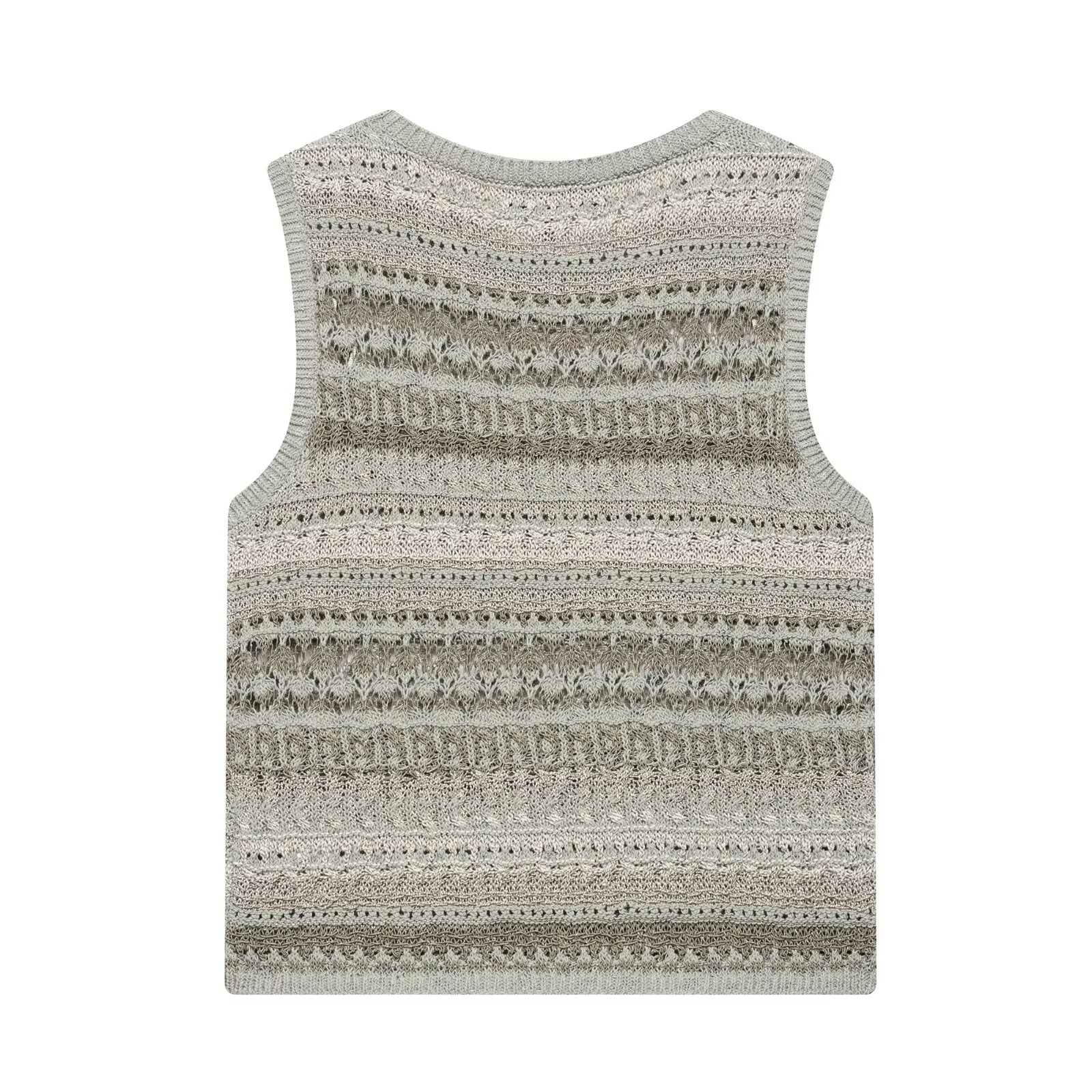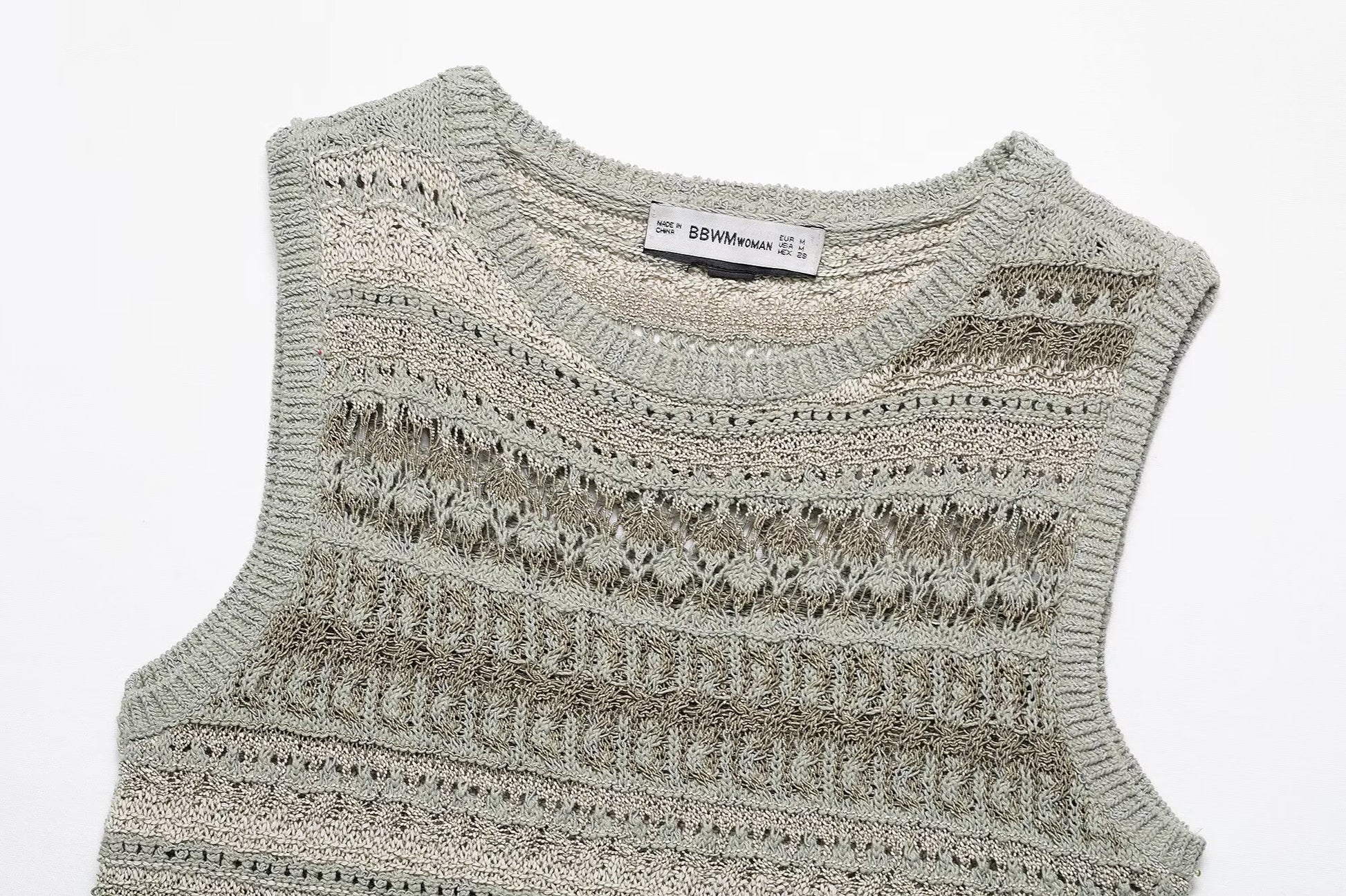 Spring Summer Women Casual round Neck Sleeveless Texture Sweater Women
