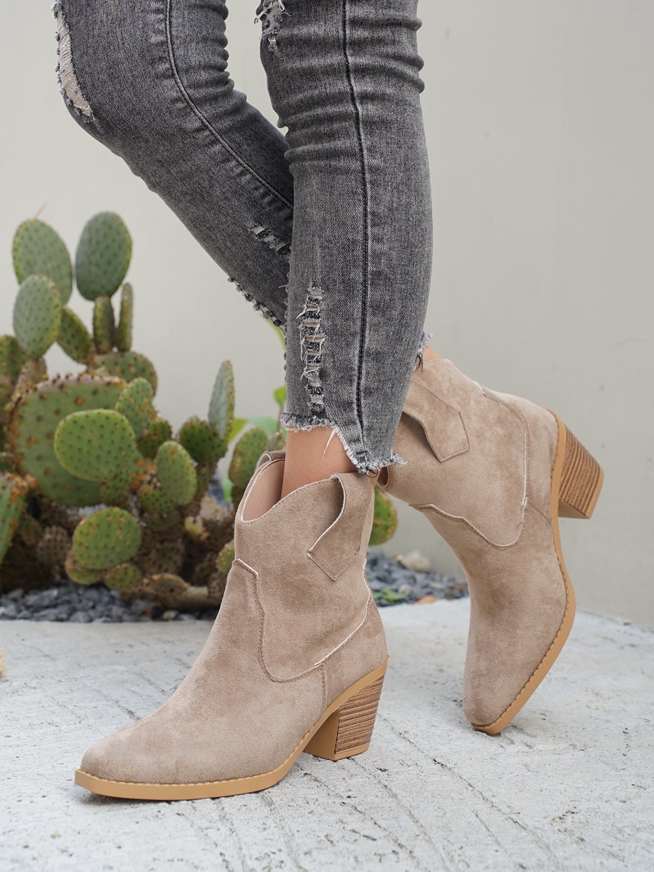 Women Boots Retro Pointed Low Top Frosted Suede Viscose Shoes Martin Boots
