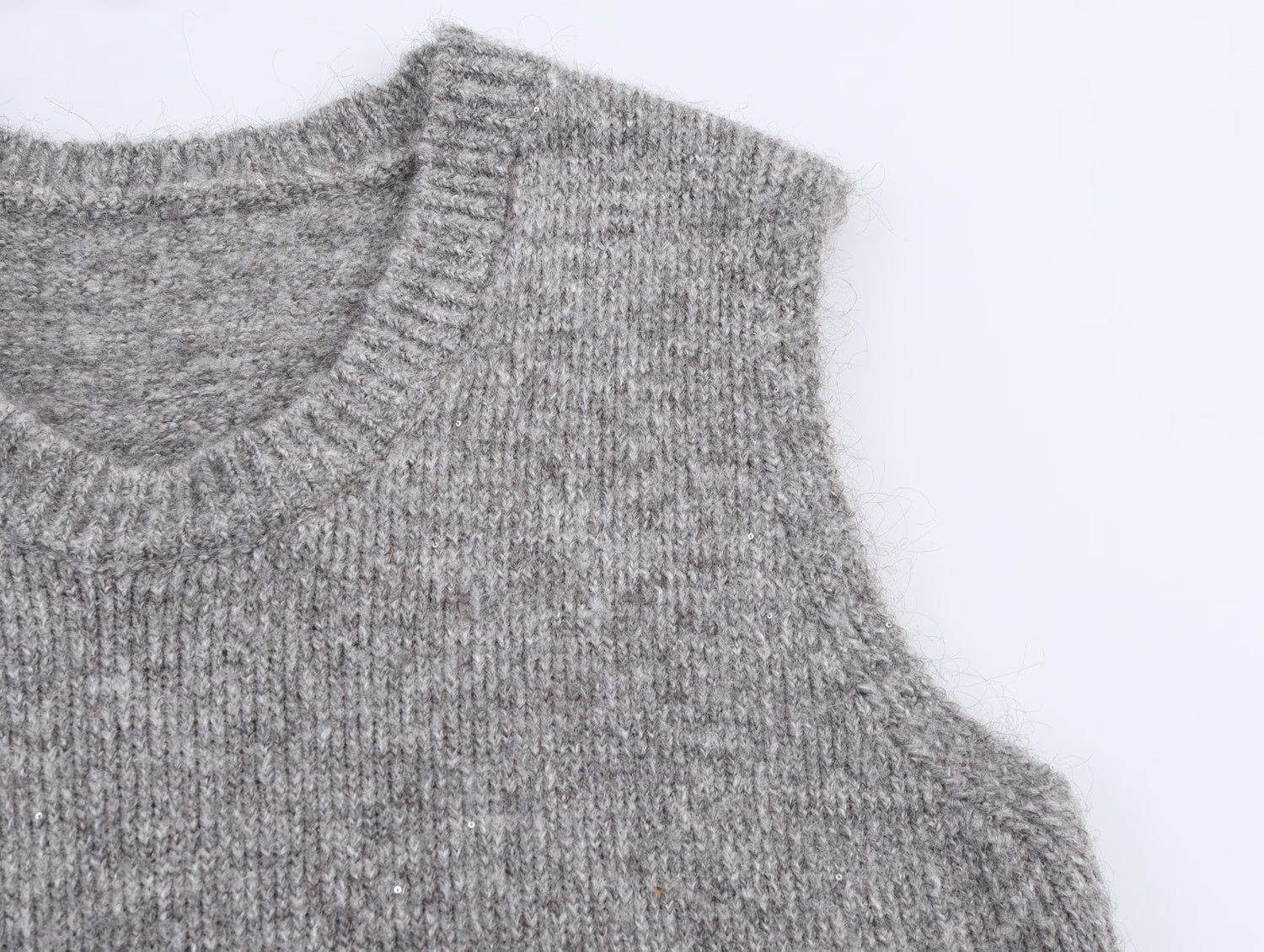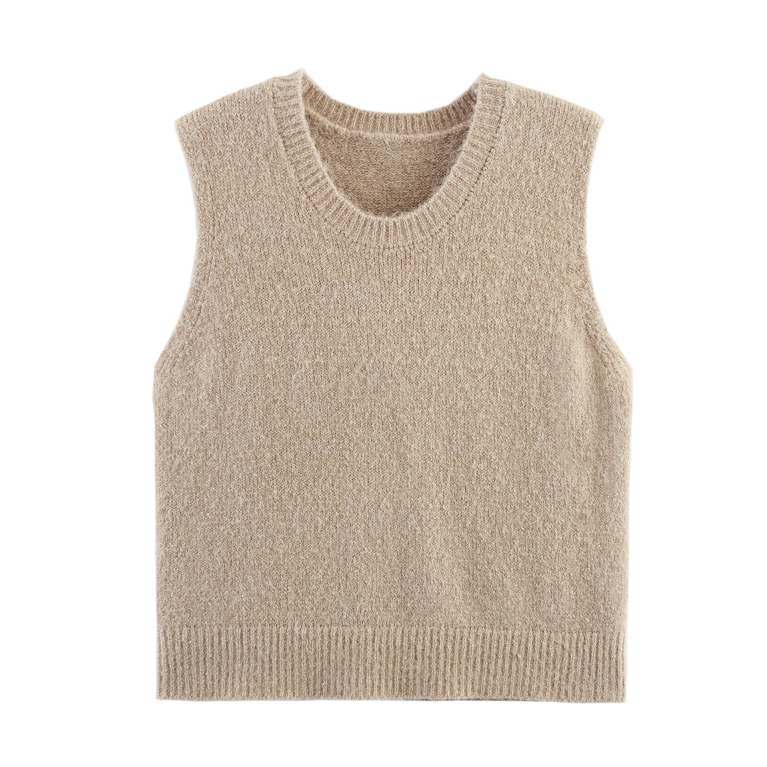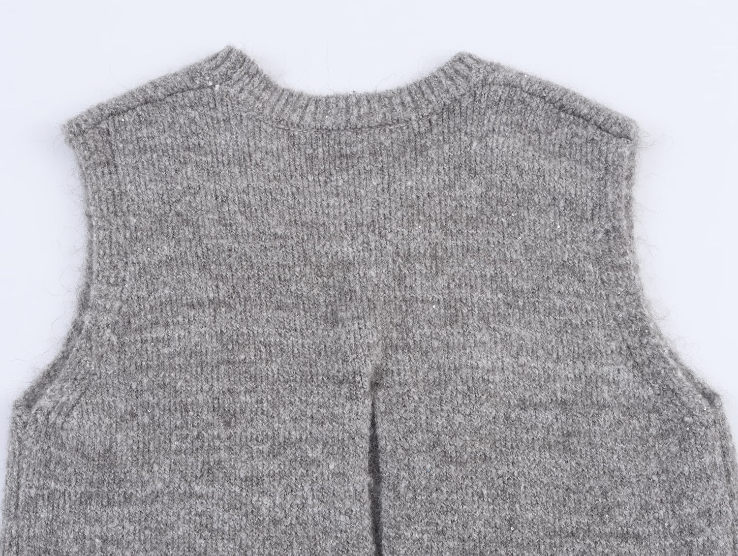 Women Clothing Autumn Simple All Match Sequined Back Slit round Neck Knitted Pullover Vest