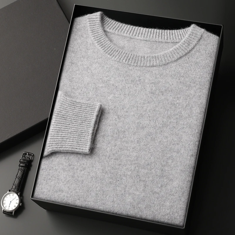 Product Name : Winter Warm Men's One Line Knitted Solid Color Thickened Seamless Sweater Pullover Office Casual Round Neck Long Sleeve Pure Goat Cashmere Sweater Knit Jumper