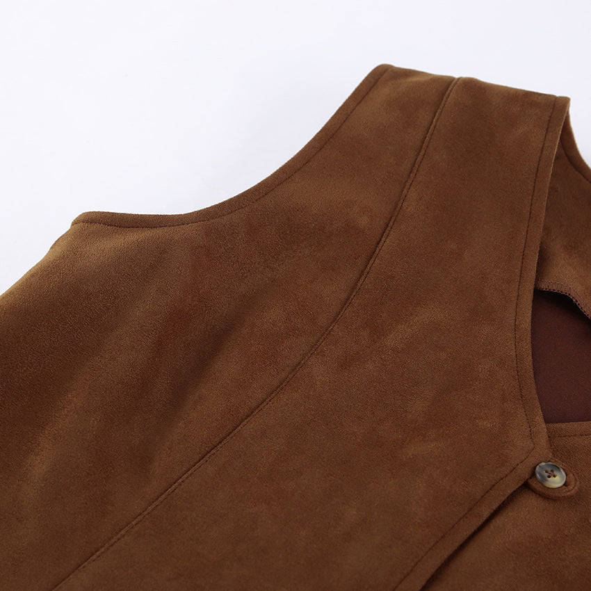Autumn Women Clothing Coat Suede Matte Casual Short Retro British V neck Bandage Vest