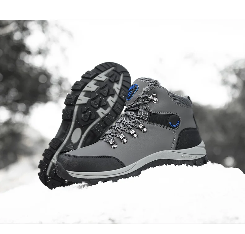Men's Winter Snow Boots High Top Waterproof Sneakers Warm Plush Climbing Boots Plush Leisure Multi-Function Mountaineering Shoe