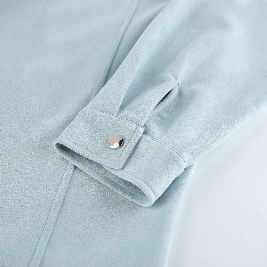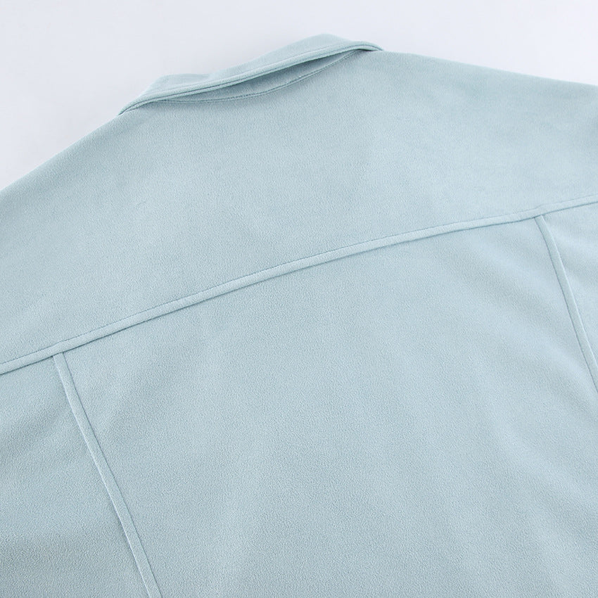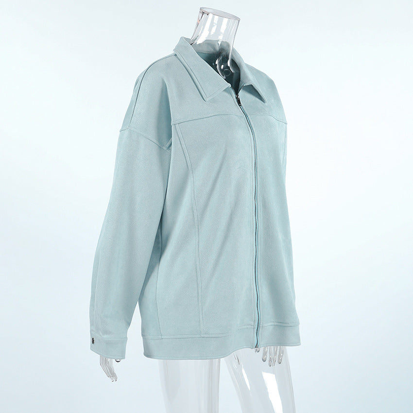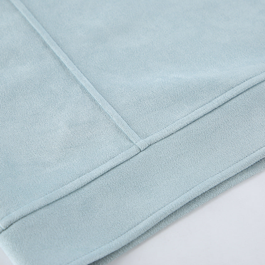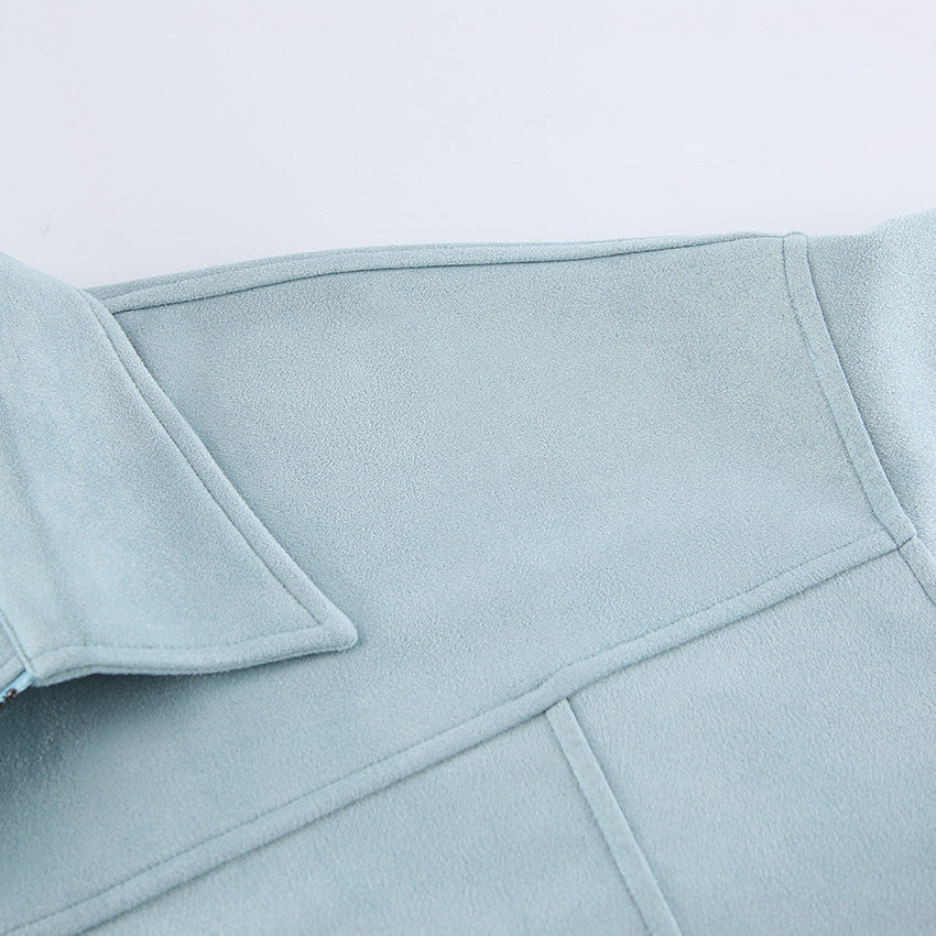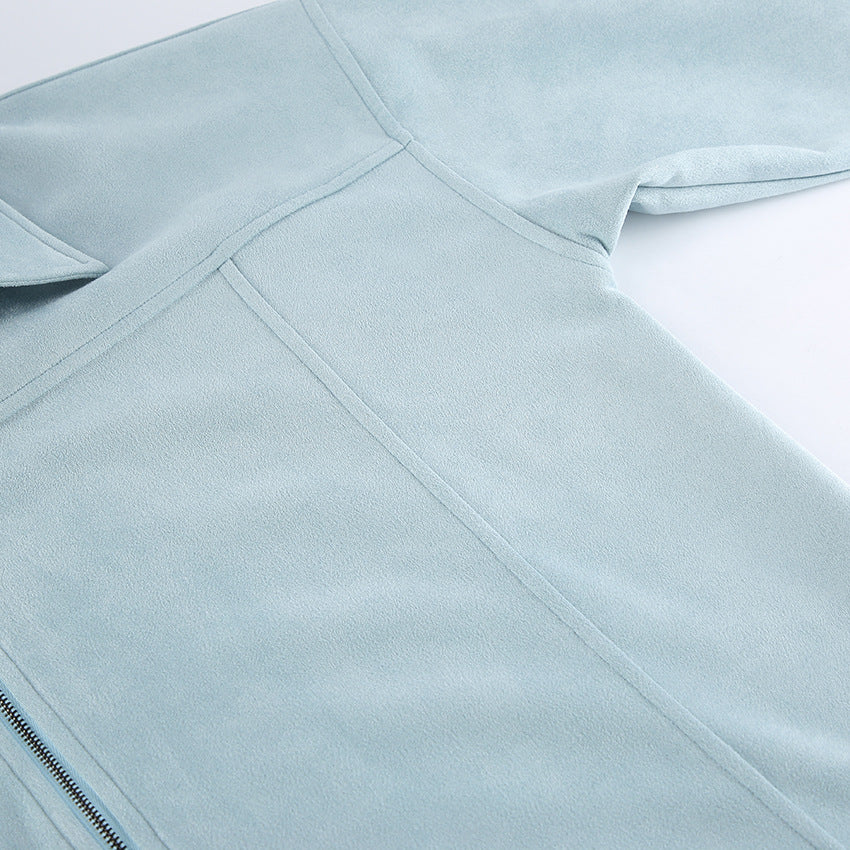 Retro Leather Coat Women Niche Blue Cool Feeling High Street Fashionable Zipper Autumn Winter Suede Jacket
