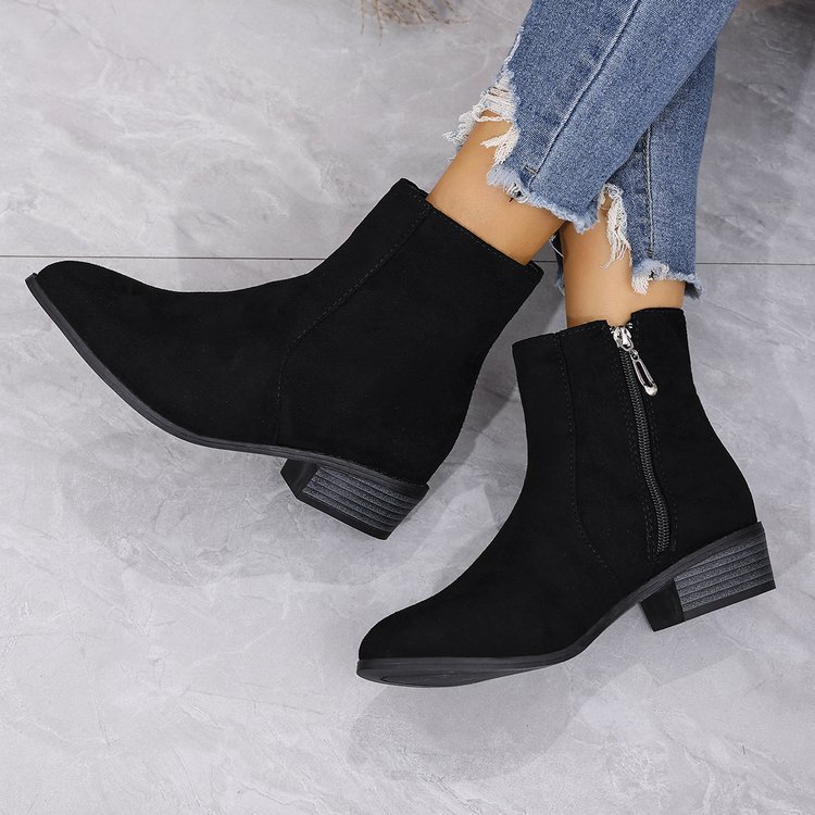 Short Side Zipper Martin Boots Women Single Boots Suede Thick Heel with British Skinny Boots