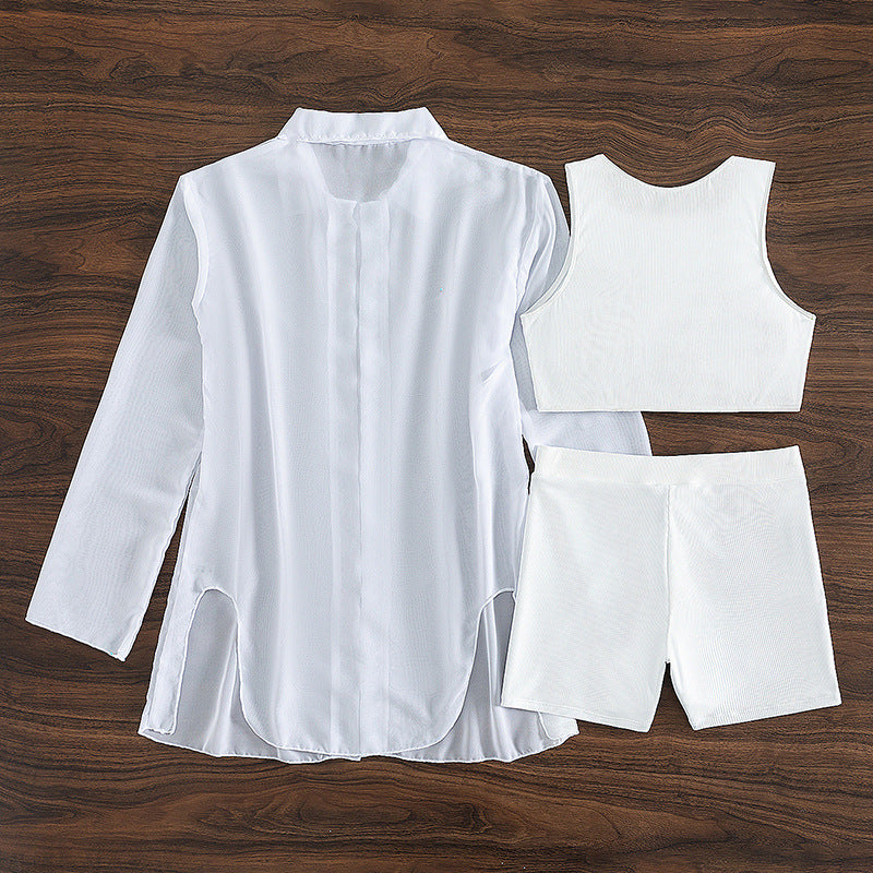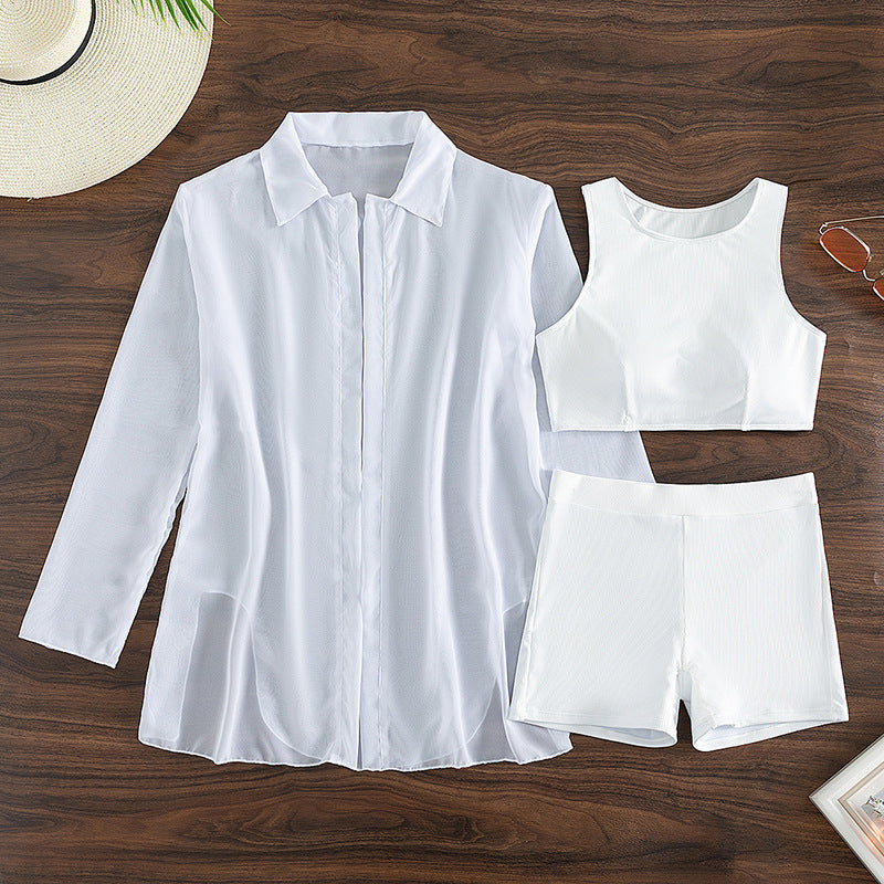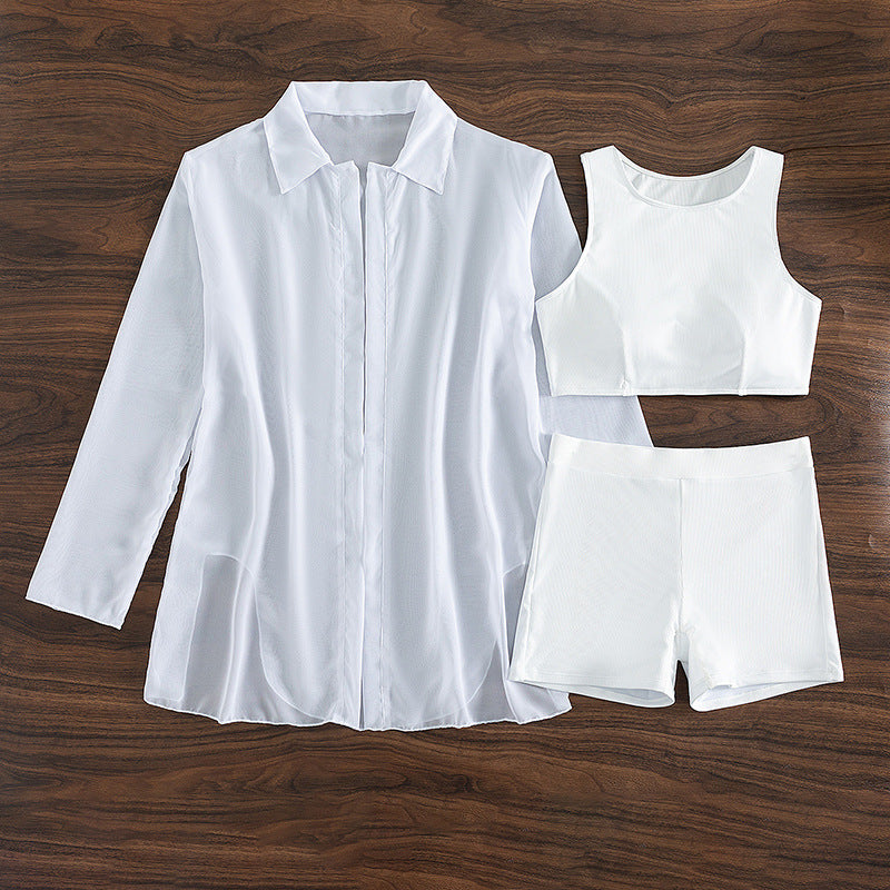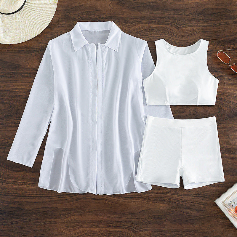 Summer Swimsuit Long Sleeve Women Swimsuit Solid Color Three Piece Sexy Bikini
