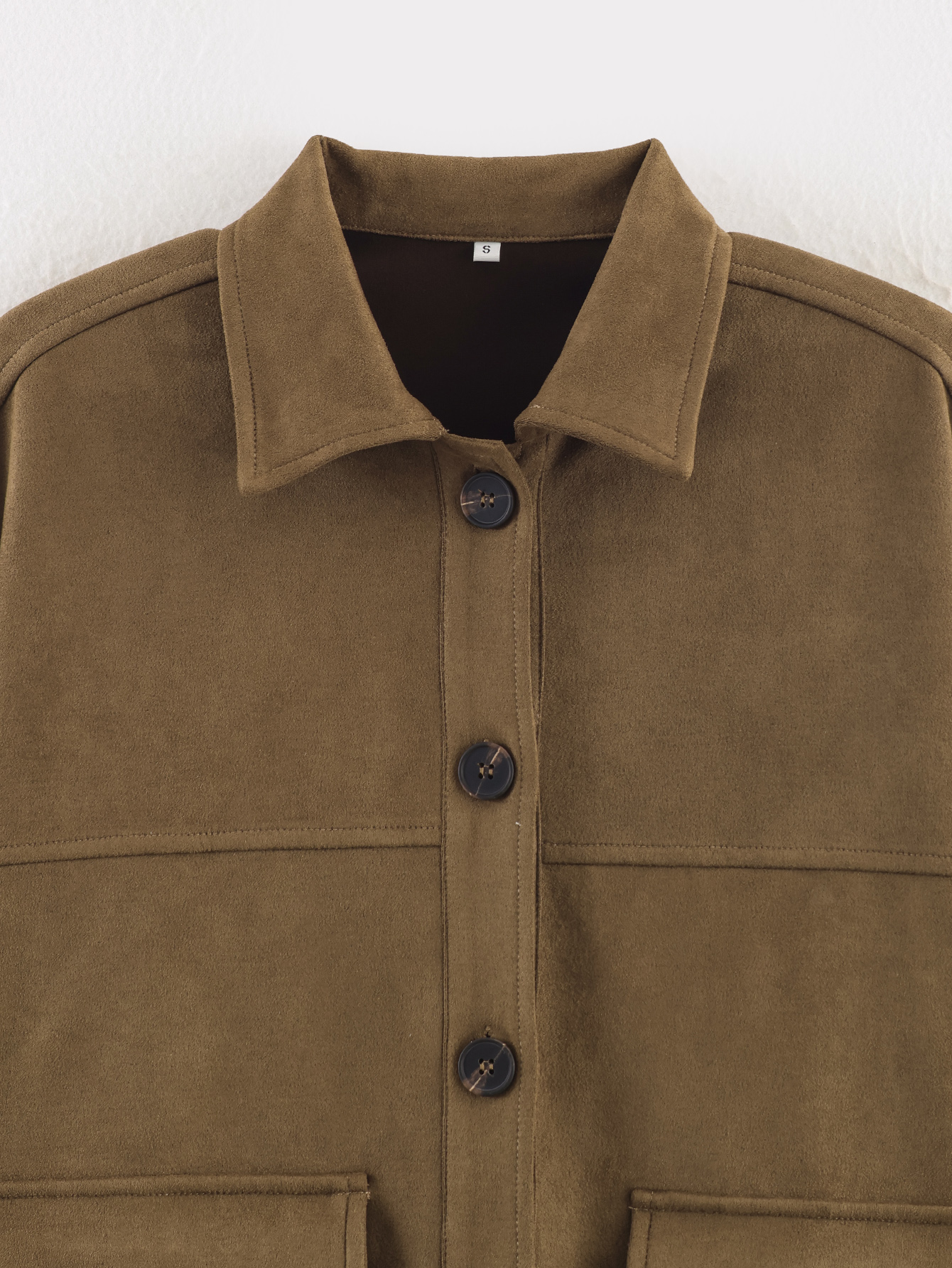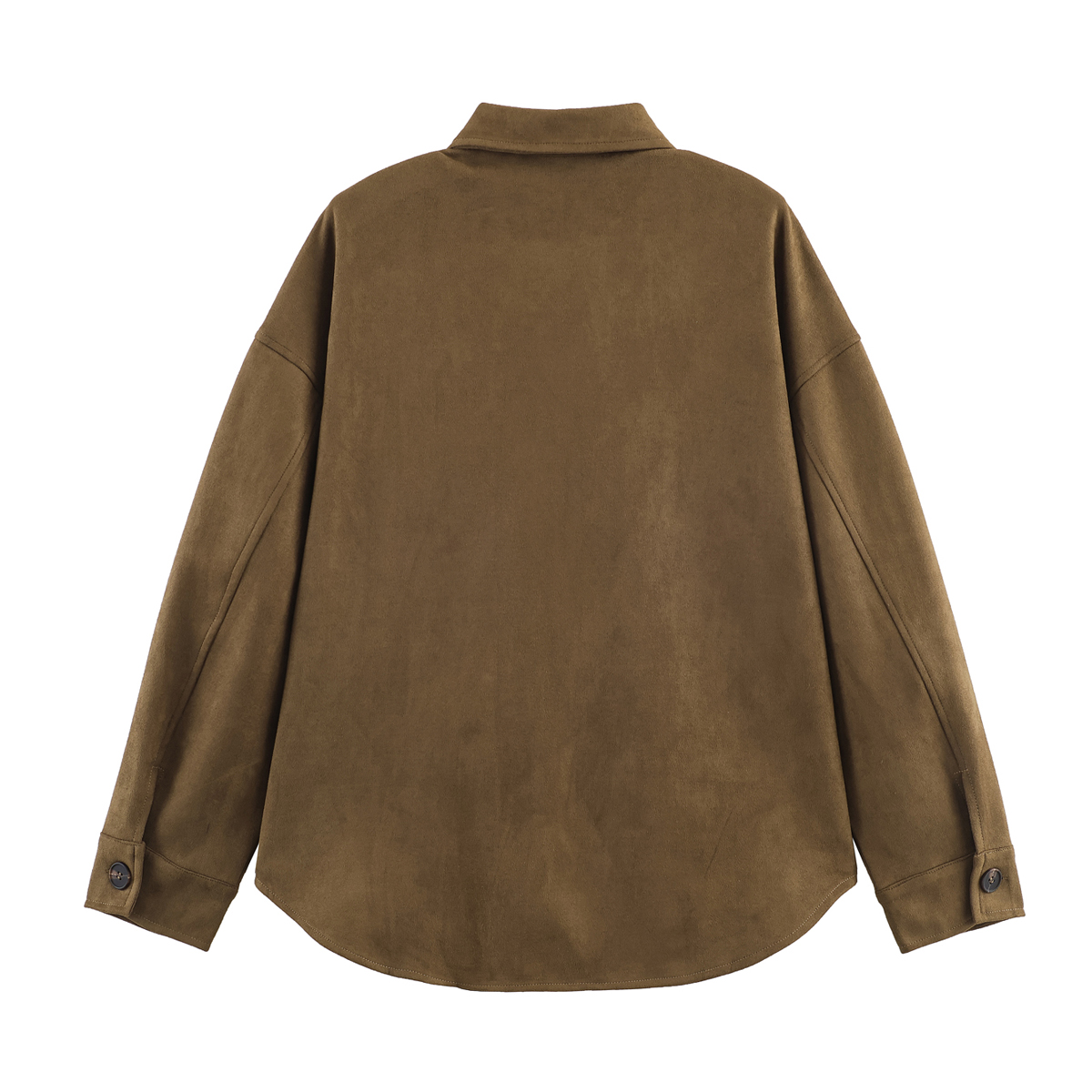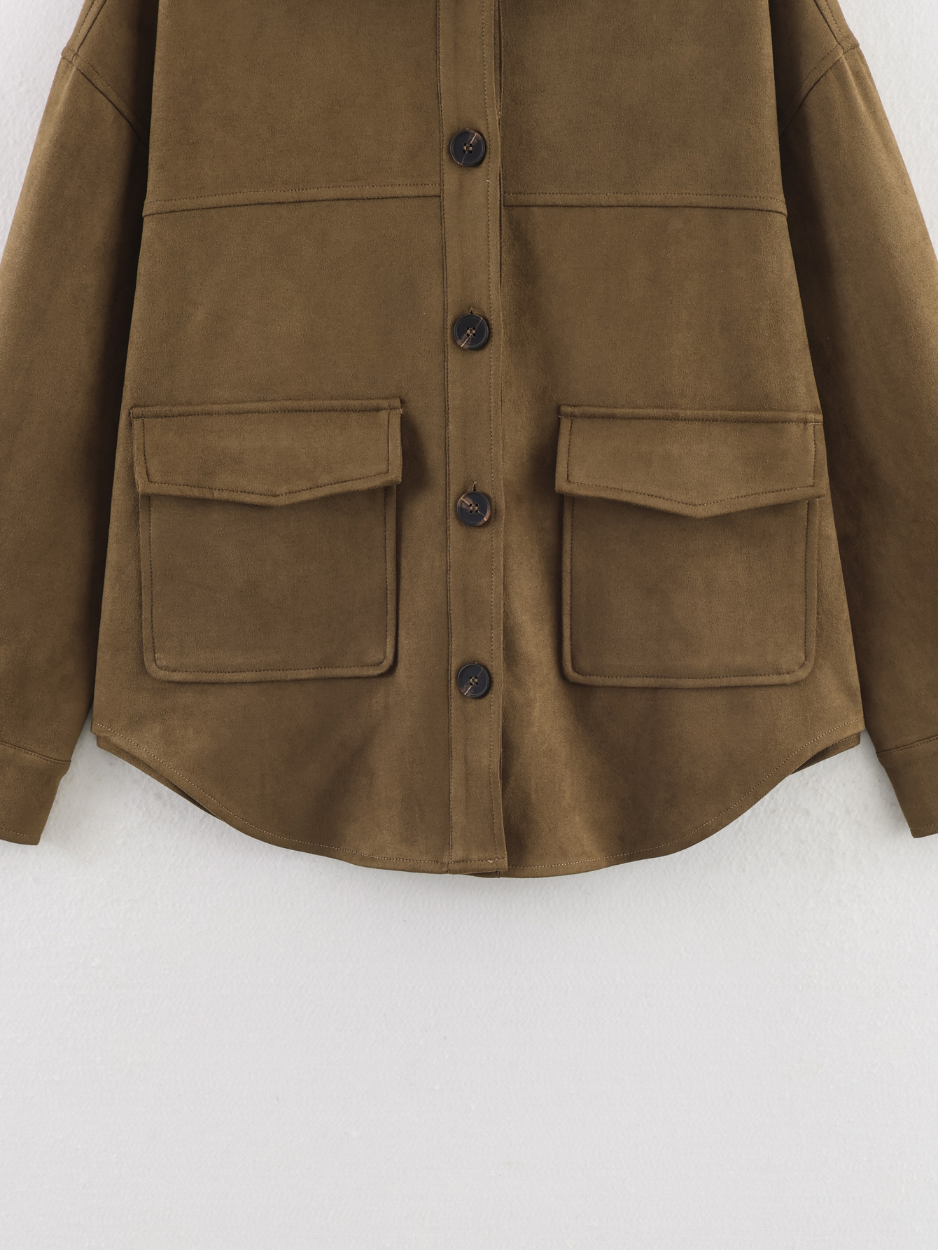 Women Clothing at Casual Suede Shirt Decorative Jacket