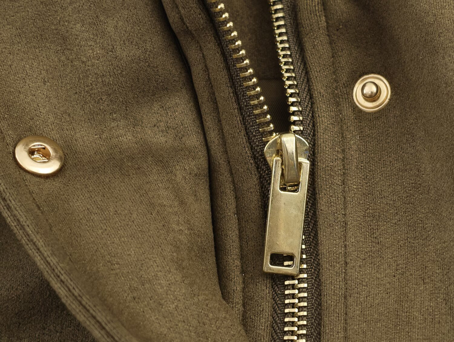 Women Clothing Autumn All Match Stand Collar Suede Effect Hooded Jacket Coat