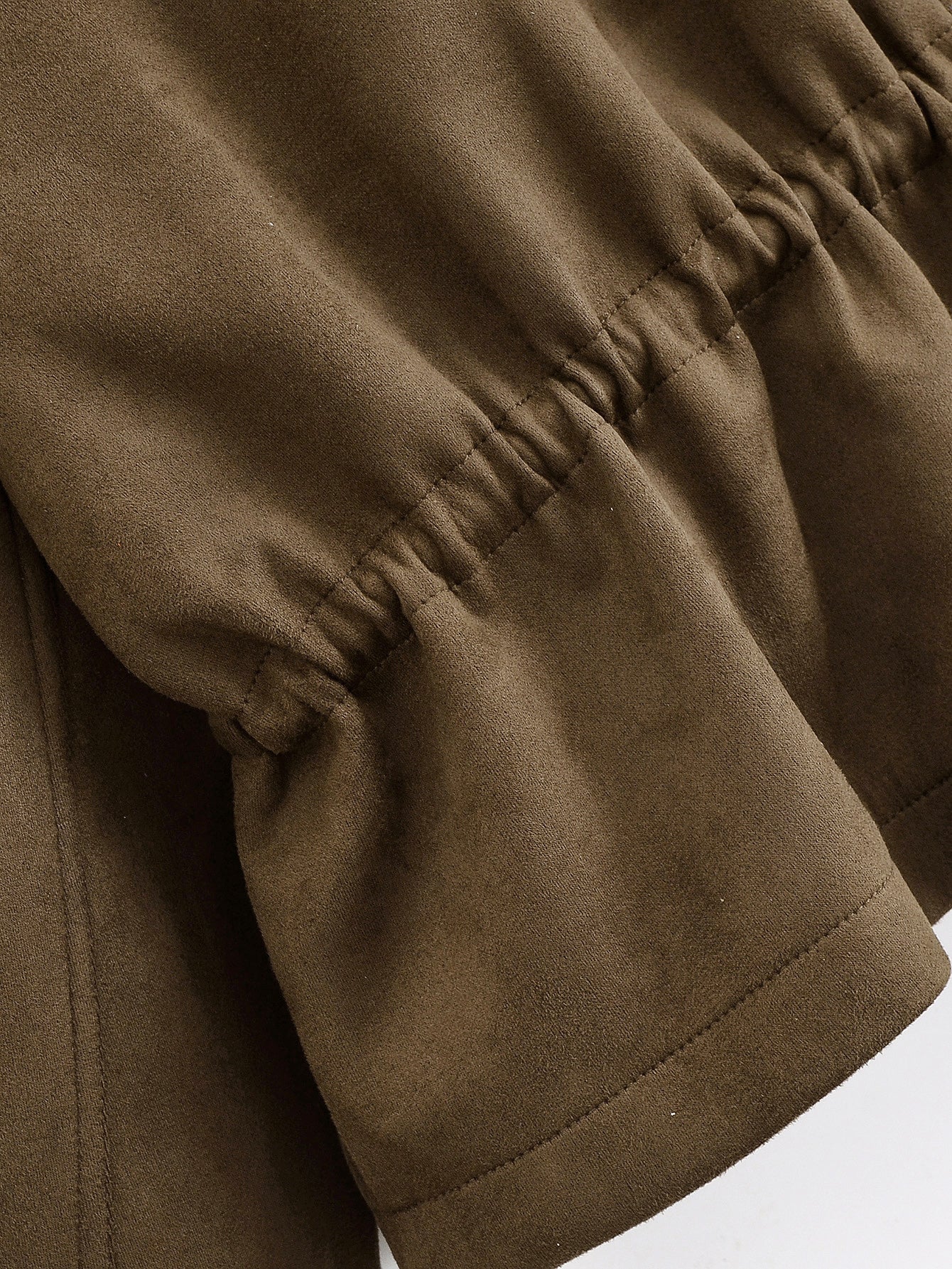 Women Clothing Autumn Urban Army Green Collared Drawstring Waist Design Coat