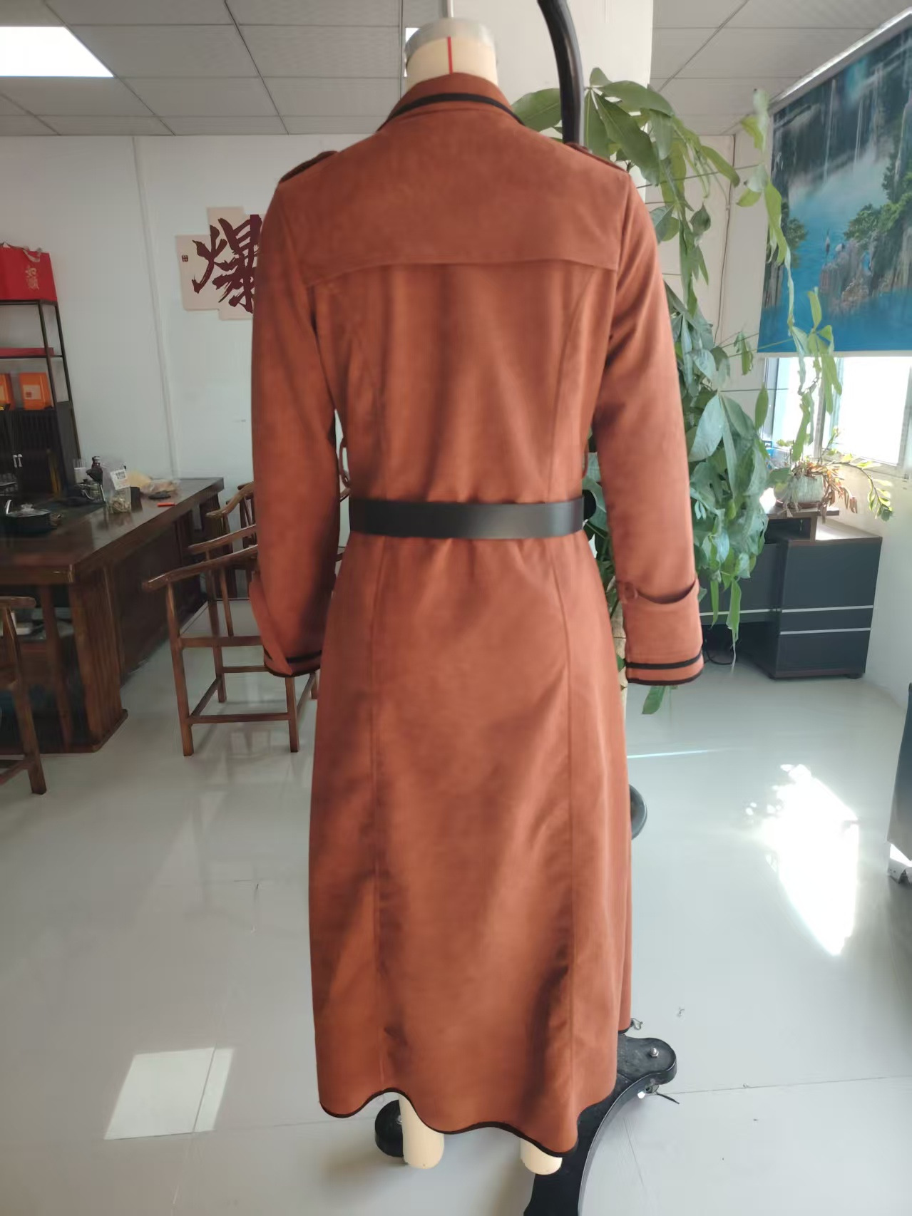 Women Clothing Fall Winter Coat Collared Western Suede Long Trench Coat