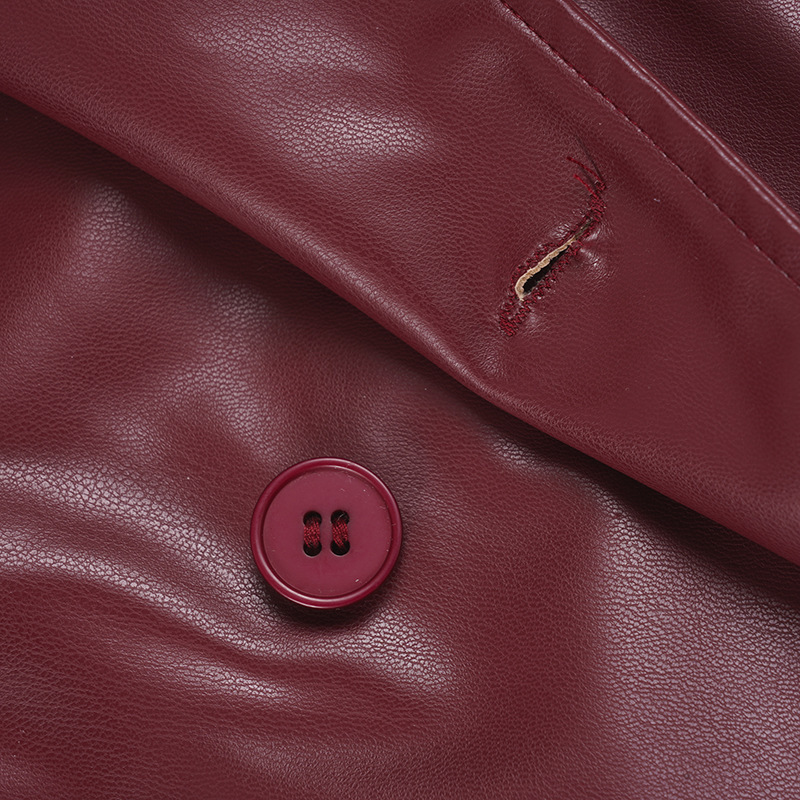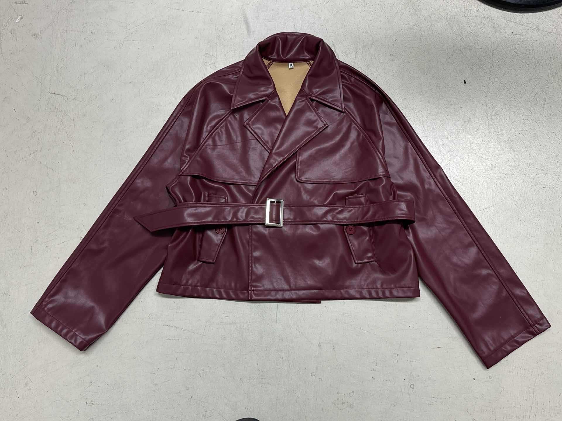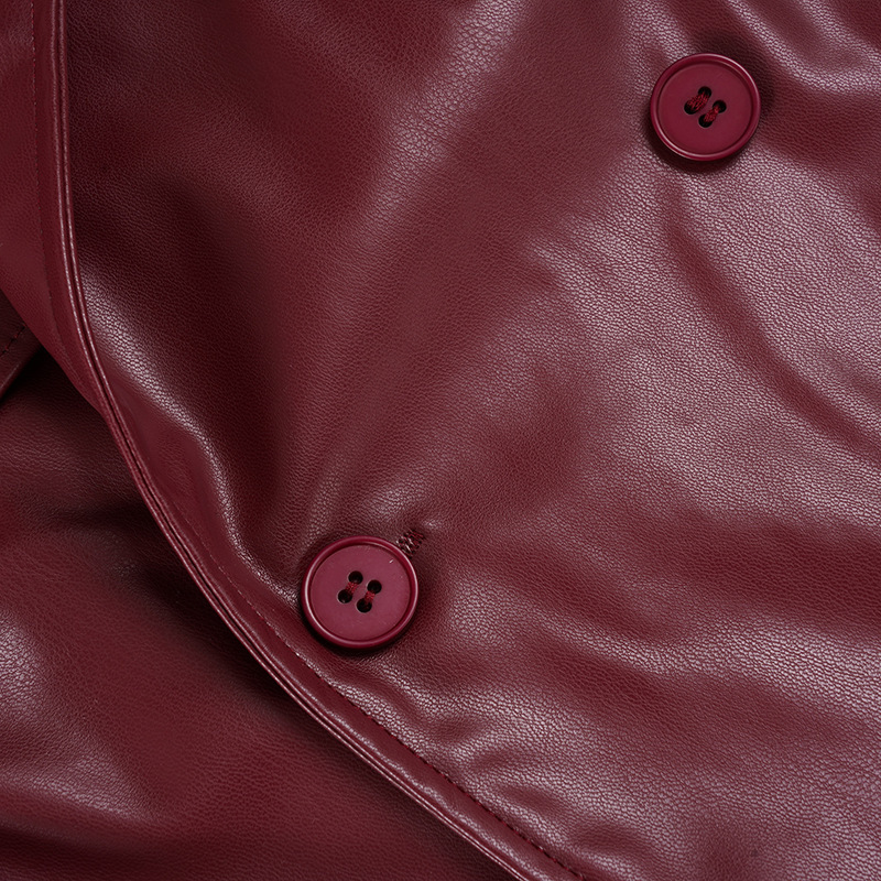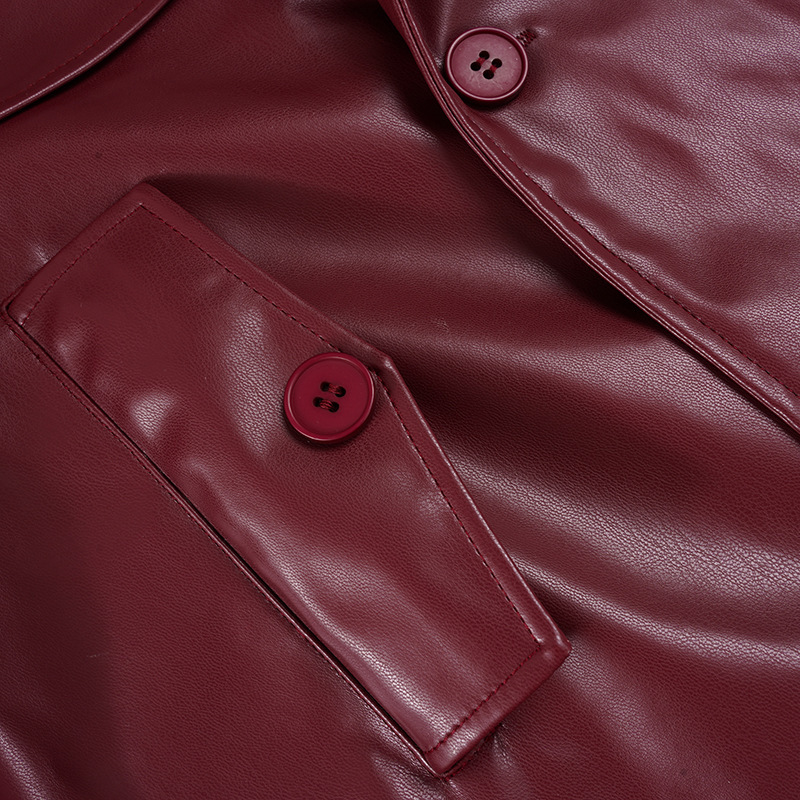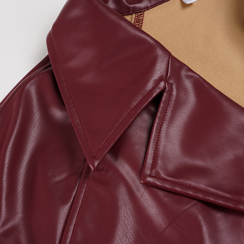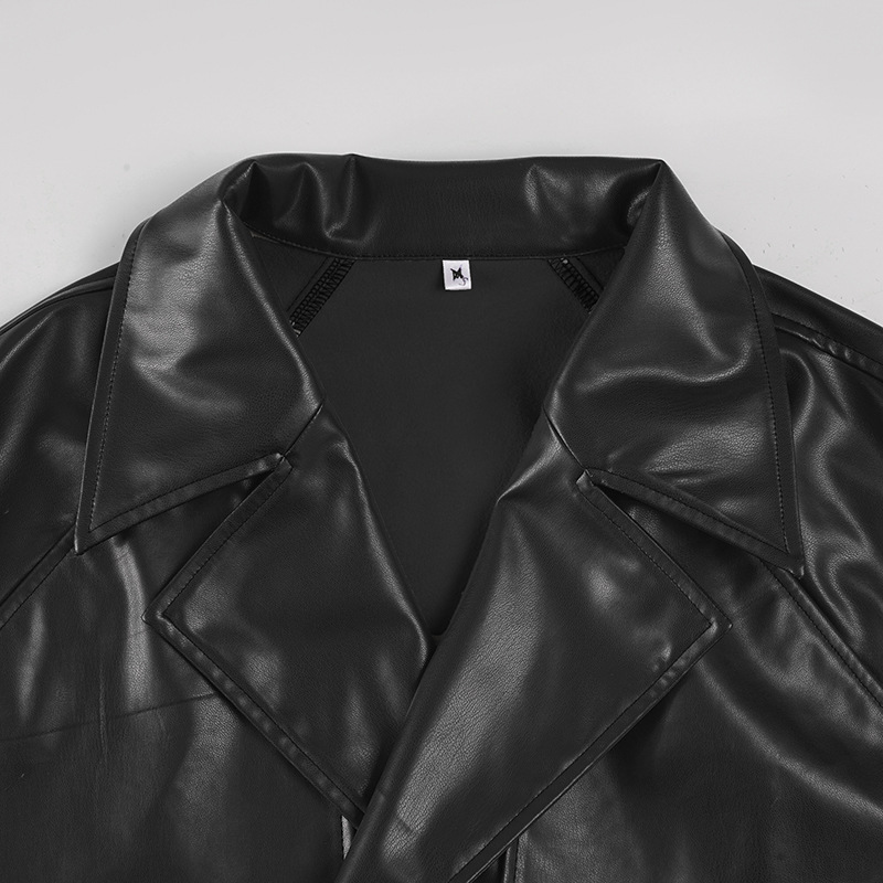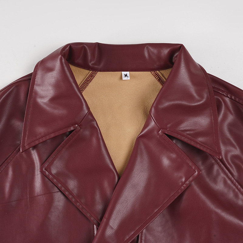 Women Clothing Japanese Buckle Belt Leather Coat Solid Color Windbreaker Sexy Long Sleeved Top Autumn Winter Outer Tower