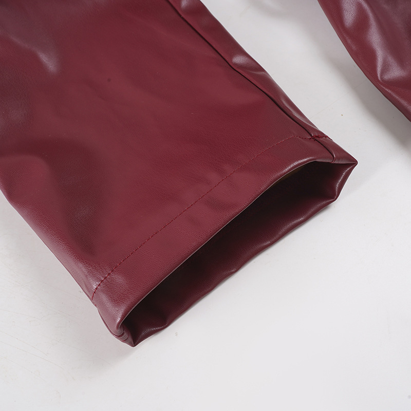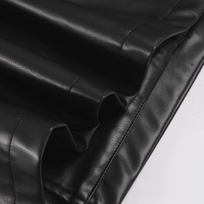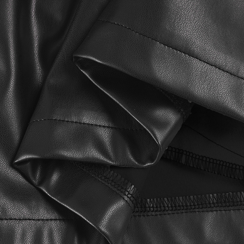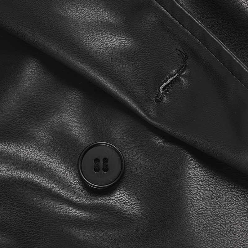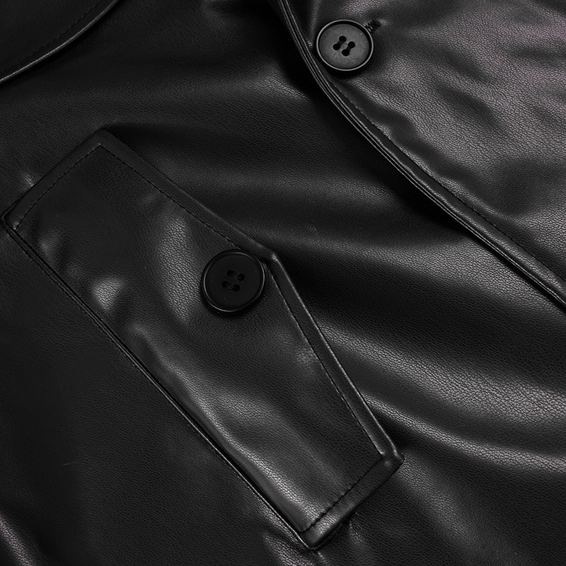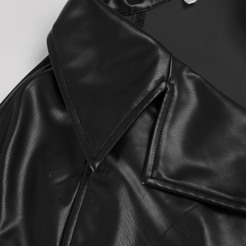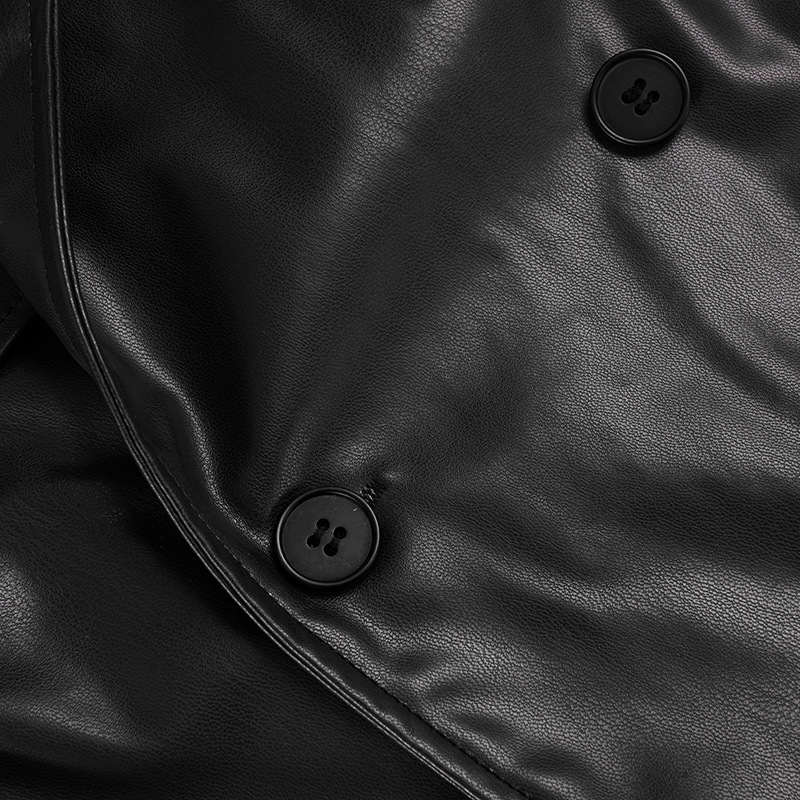 Women Clothing Japanese Buckle Belt Leather Coat Solid Color Windbreaker Sexy Long Sleeved Top Autumn Winter Outer Tower
