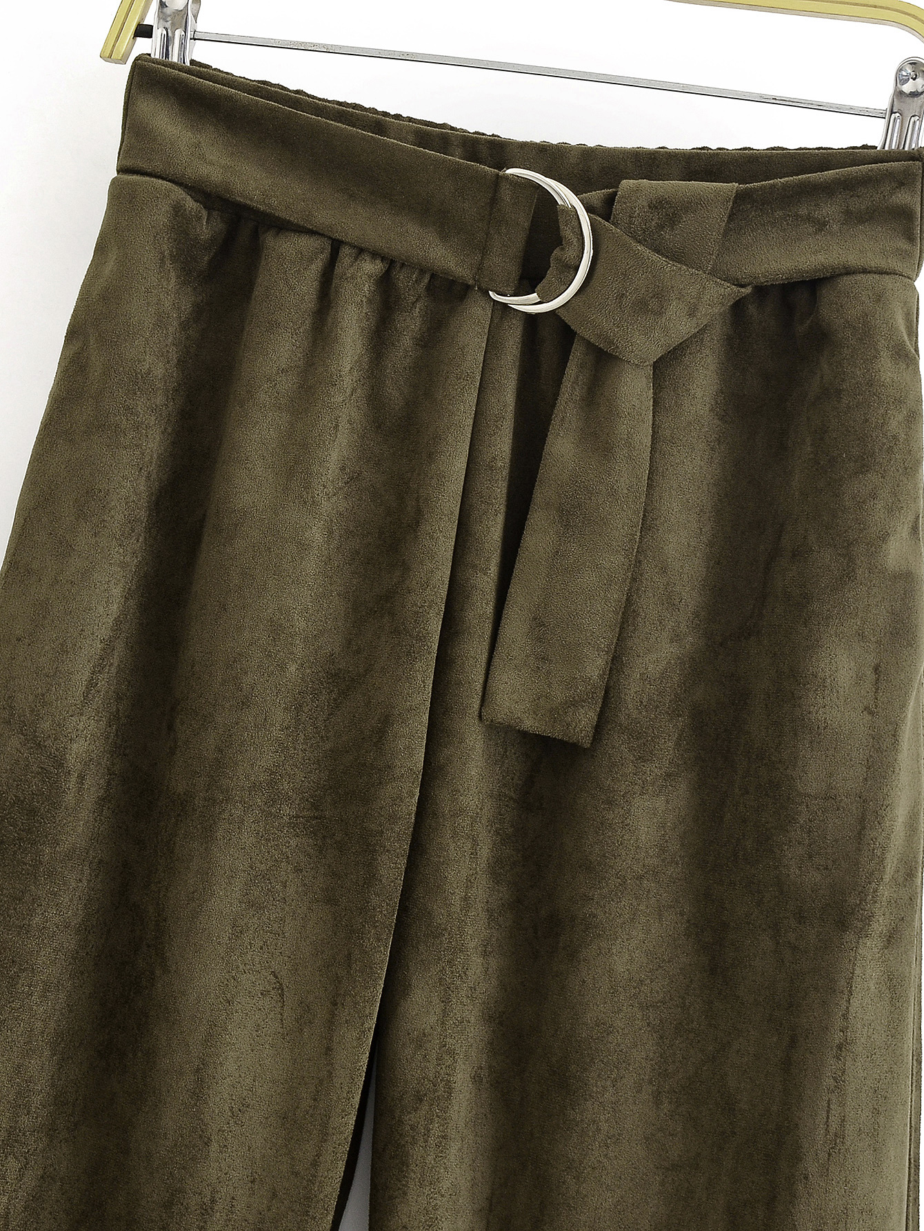 Women Clothing Waist Pleated Suede T shirt Top Belt Pants Suit Women