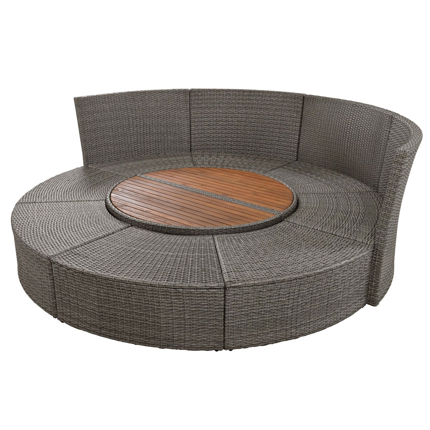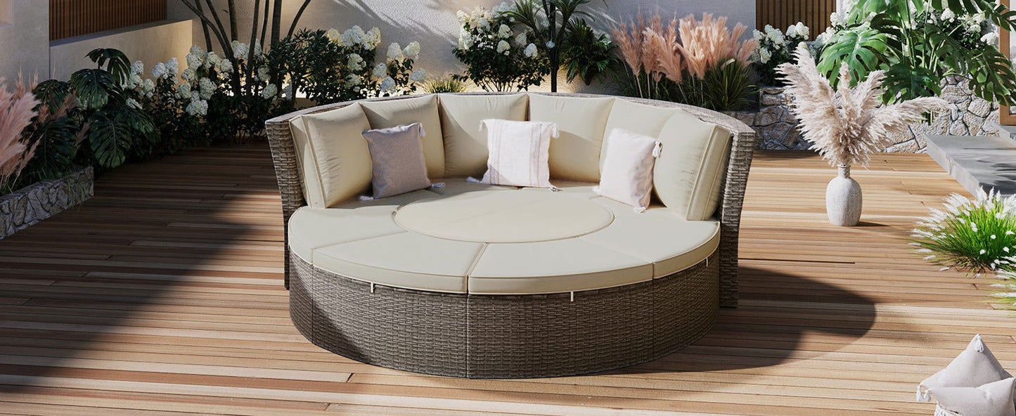 TOPMAX Patio 5-Piece Round Rattan Sectional Sofa Set All-Weather PE Wicker Sunbed Daybed with Round Liftable Table and Washable Cushions for Outdoor Backyard Poolside, Gray