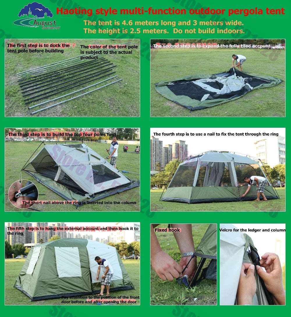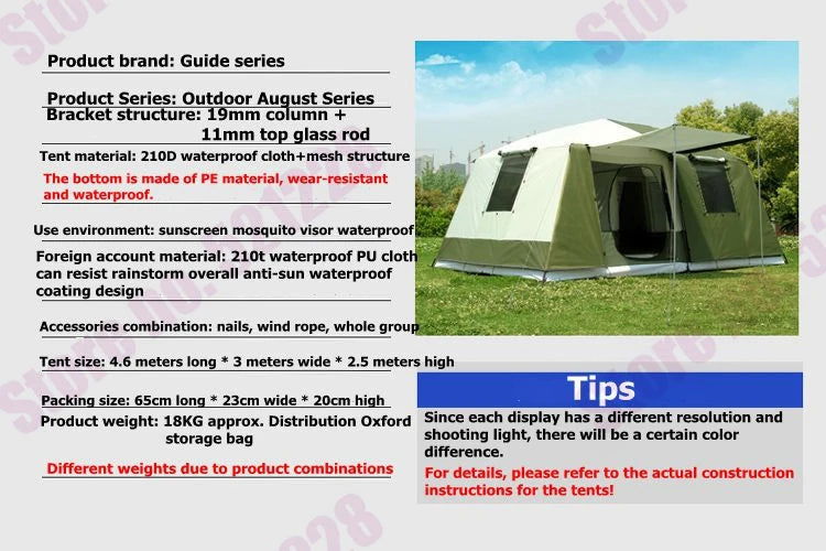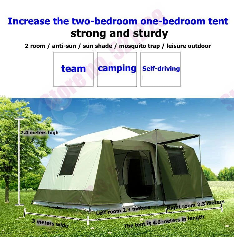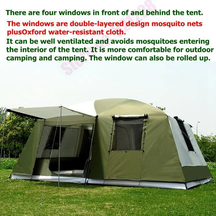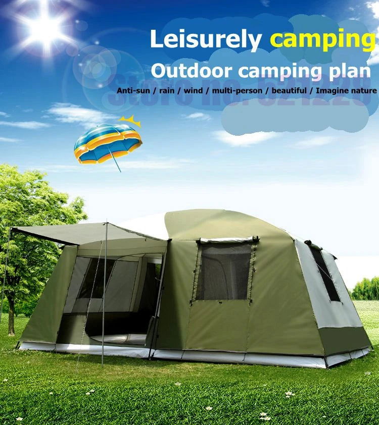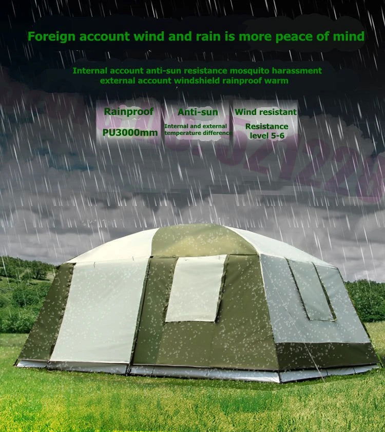 2 Bedroom 1 Living Room UV 6 8 10 12 Person Luxury Family Party Base Anti Rain Hiking Travel Mountaineering Outdoor Camping Tent