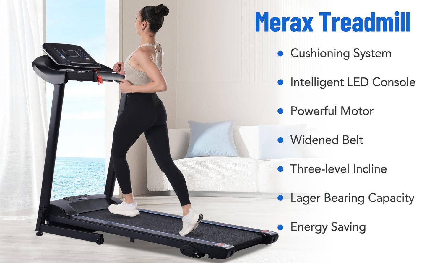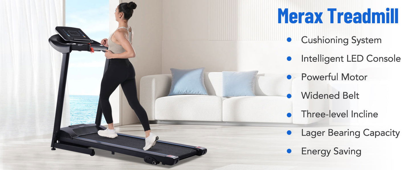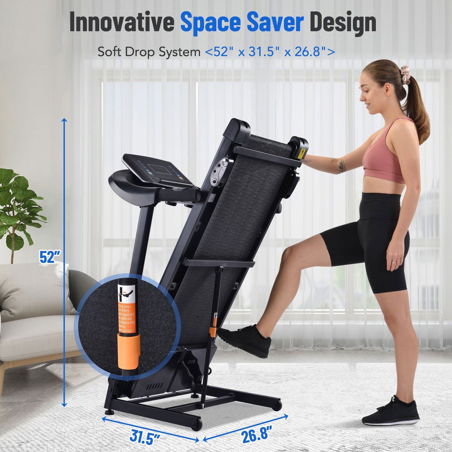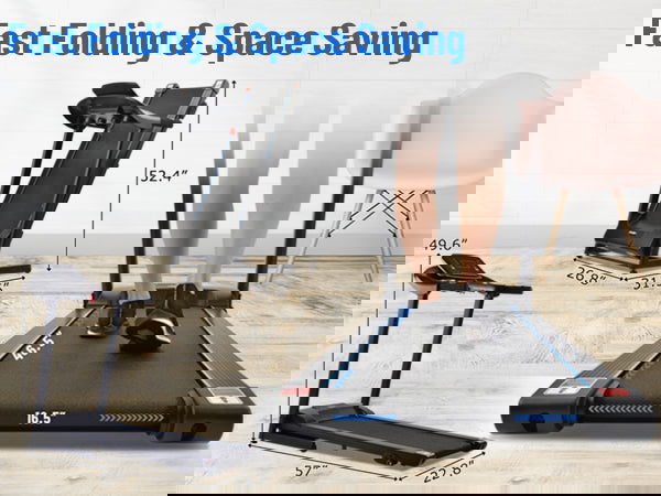 Spacious 46.5 x 16.5 tread belt gives you plenty of room for elbow and feet to get moving. Meanwhile, you dont have to sacrifice your living space to get a great workout with the folding design. You can easily fold the treadmill up and roll it out of the way for storage.
