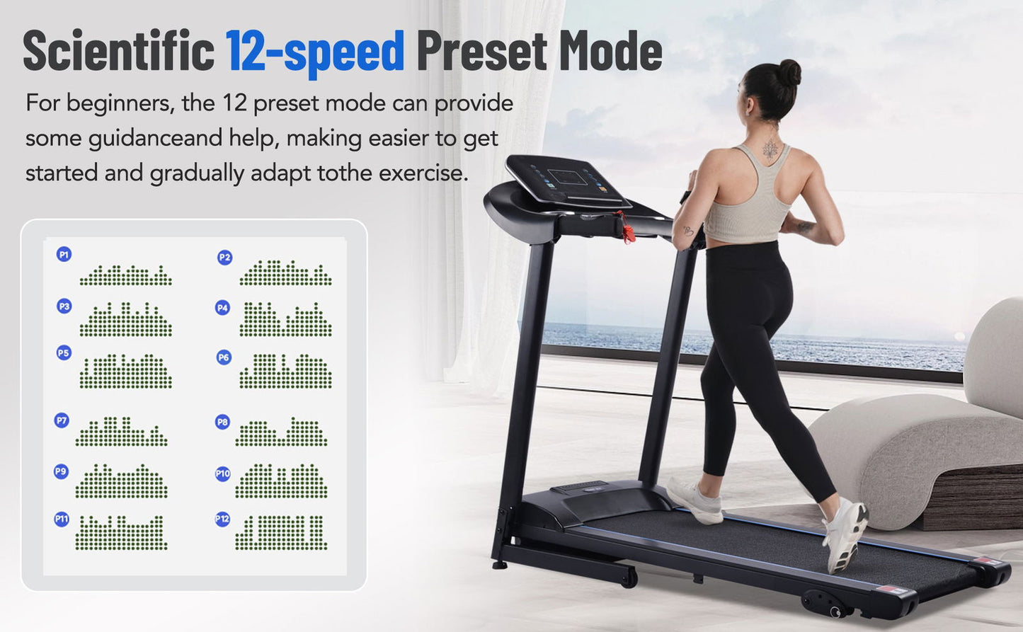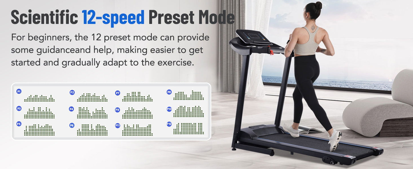 12 pre-set programs designed to help you reach your fitness goals faster and push yourself harder on each run. The 3 manual incline settings allow for varying workout intensity and targeting different muscle groups for better results.