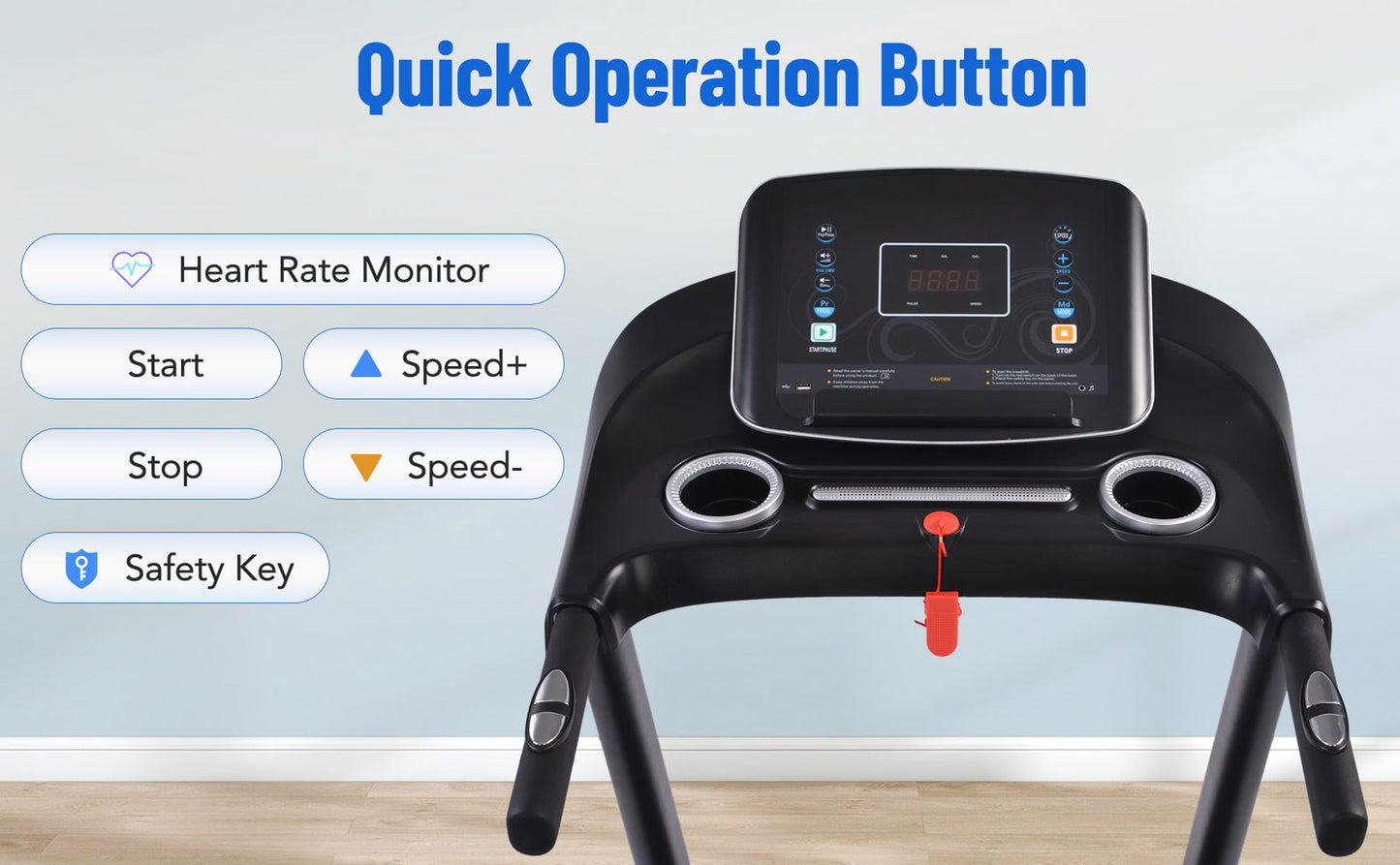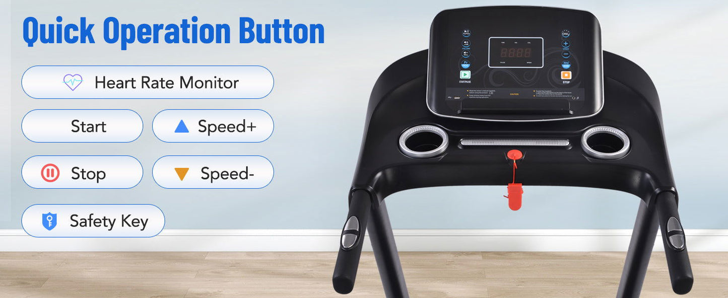 This treadmill features an optimized 2.5HP motor that offers reliability, high responsiveness and quality performance for a smooth run. Whether you want to walk, jog or run, this machine can go all the way from 0.5 to 10 MPH.