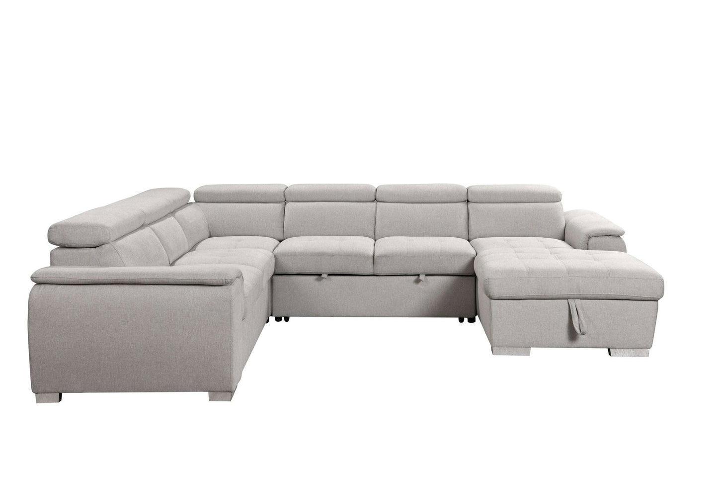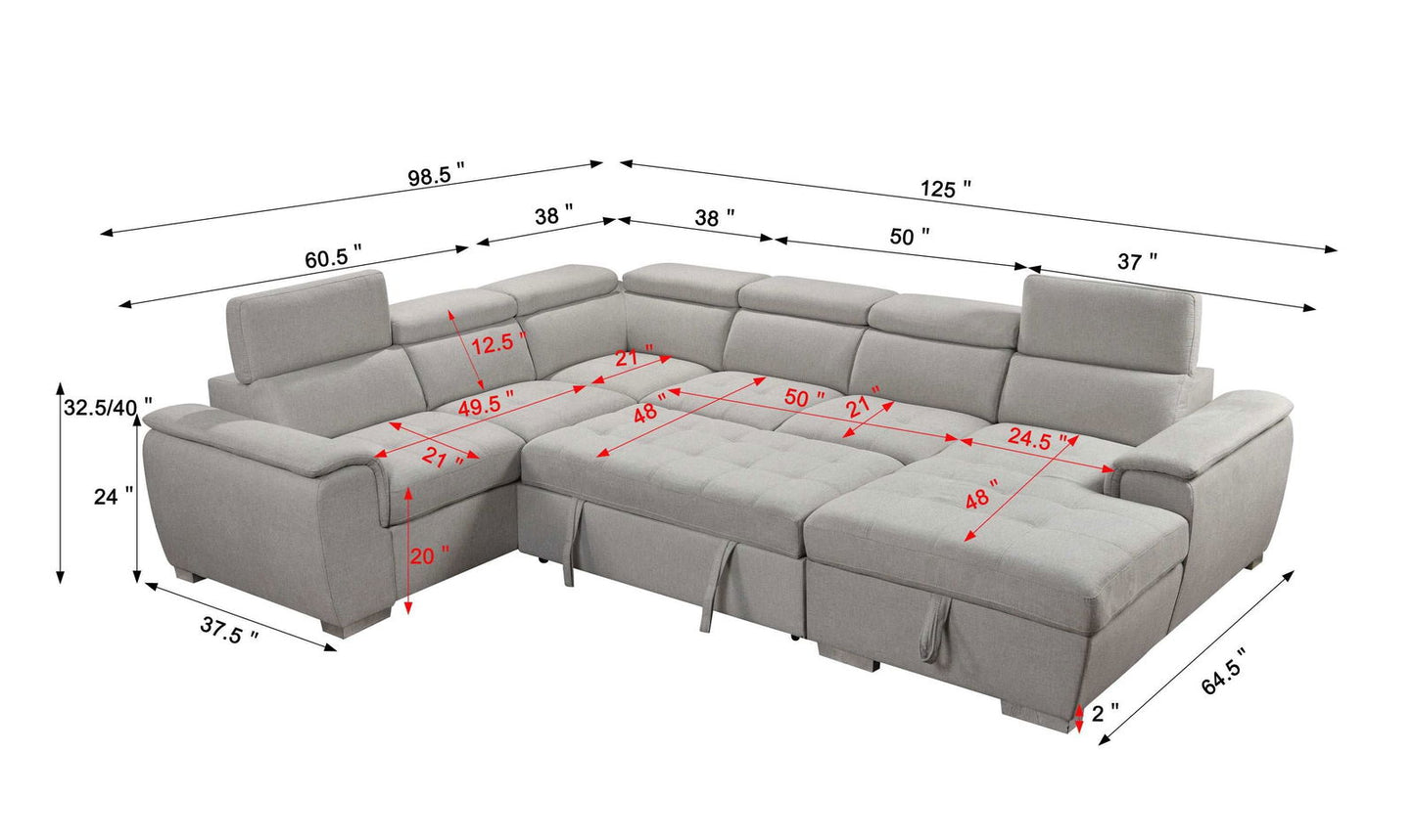 125" Modern U Shaped 7-seat Sectional Sofa Couch with Adjustable Headrest, Sofa Bed with Storage Chaise-Pull Out Couch Bed for Living Room ,Beige