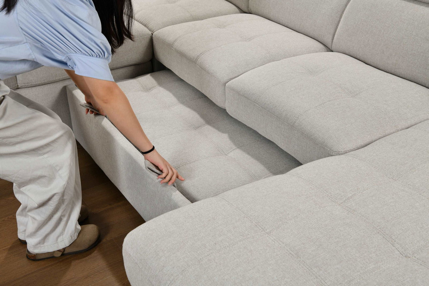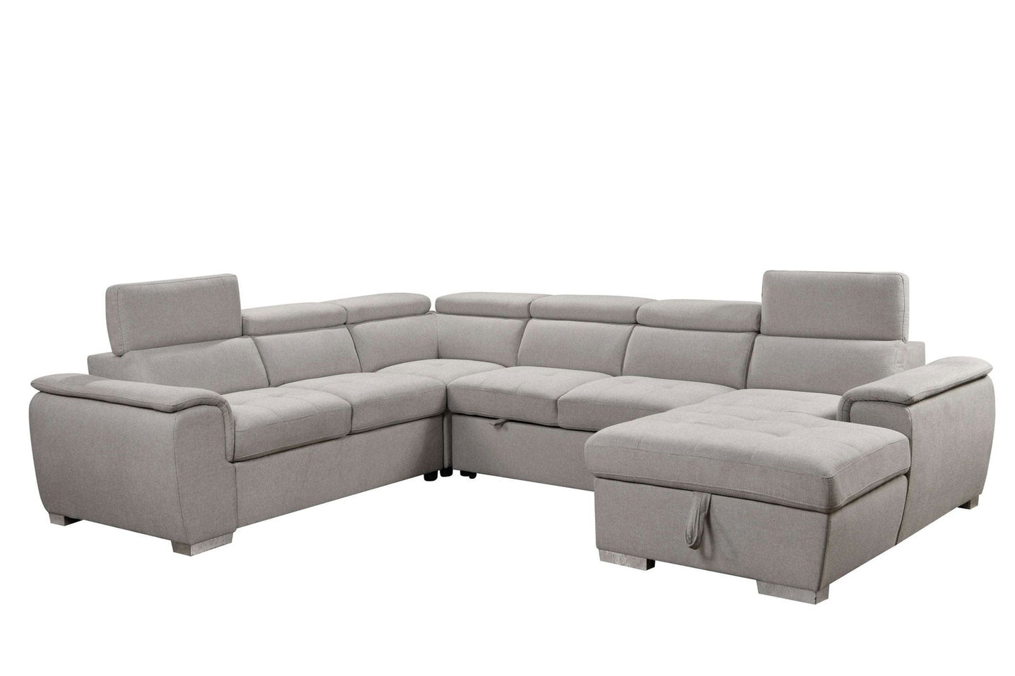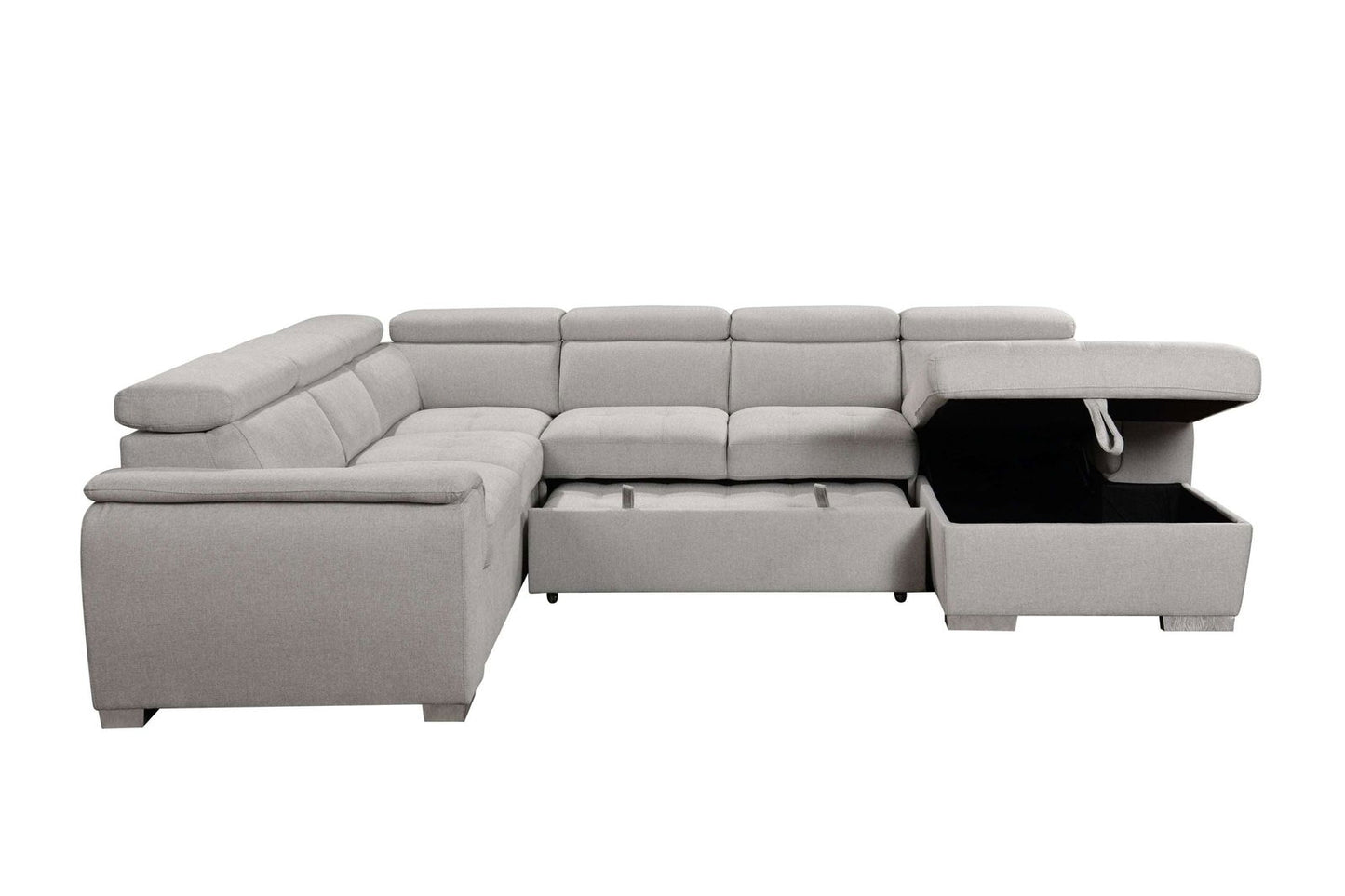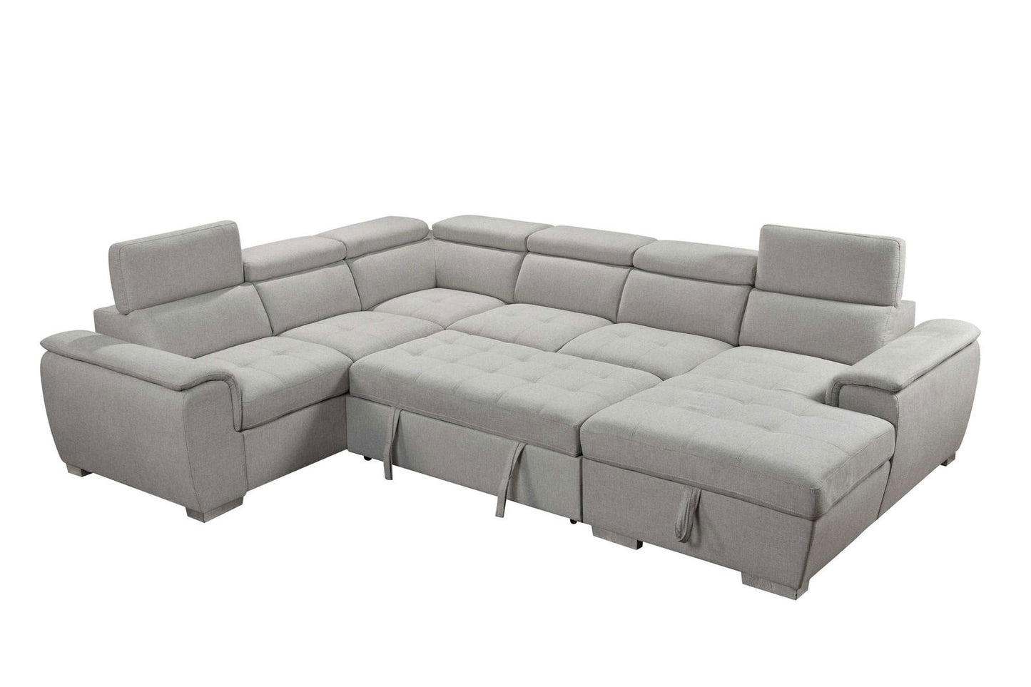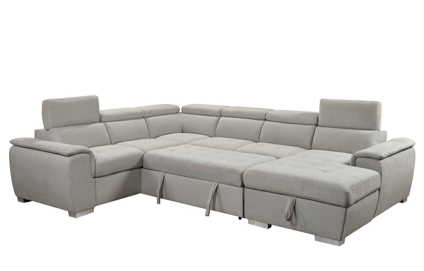 - [4 in 1 sectional sleeper sofa]: This sectional sleeper sofa consists of 4 parts: 1x chaise lounge, 1x armless loveseat with pull out bed, 1x loveseat with arms, 1x corner sofa. It is very easy to assemble this sectional sofa into a U- shape sofa or a pull out sleeper for everyday use or unexpected guests, study, home office or bedroom living room.