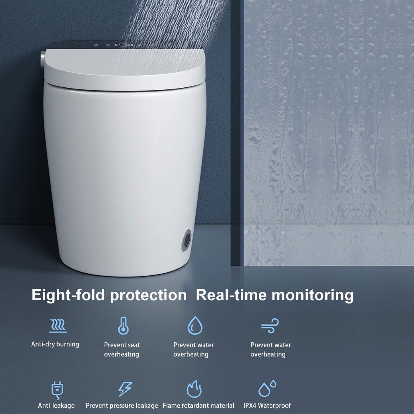 - [Portable & Convenient Flushing]: Smart toilet include various flushing modes: off-seat flushing, power-off flushing, foot sensor flushing,remote control flushing, side button control flushing, following by a powerful flush on your departure for hands-free experience.