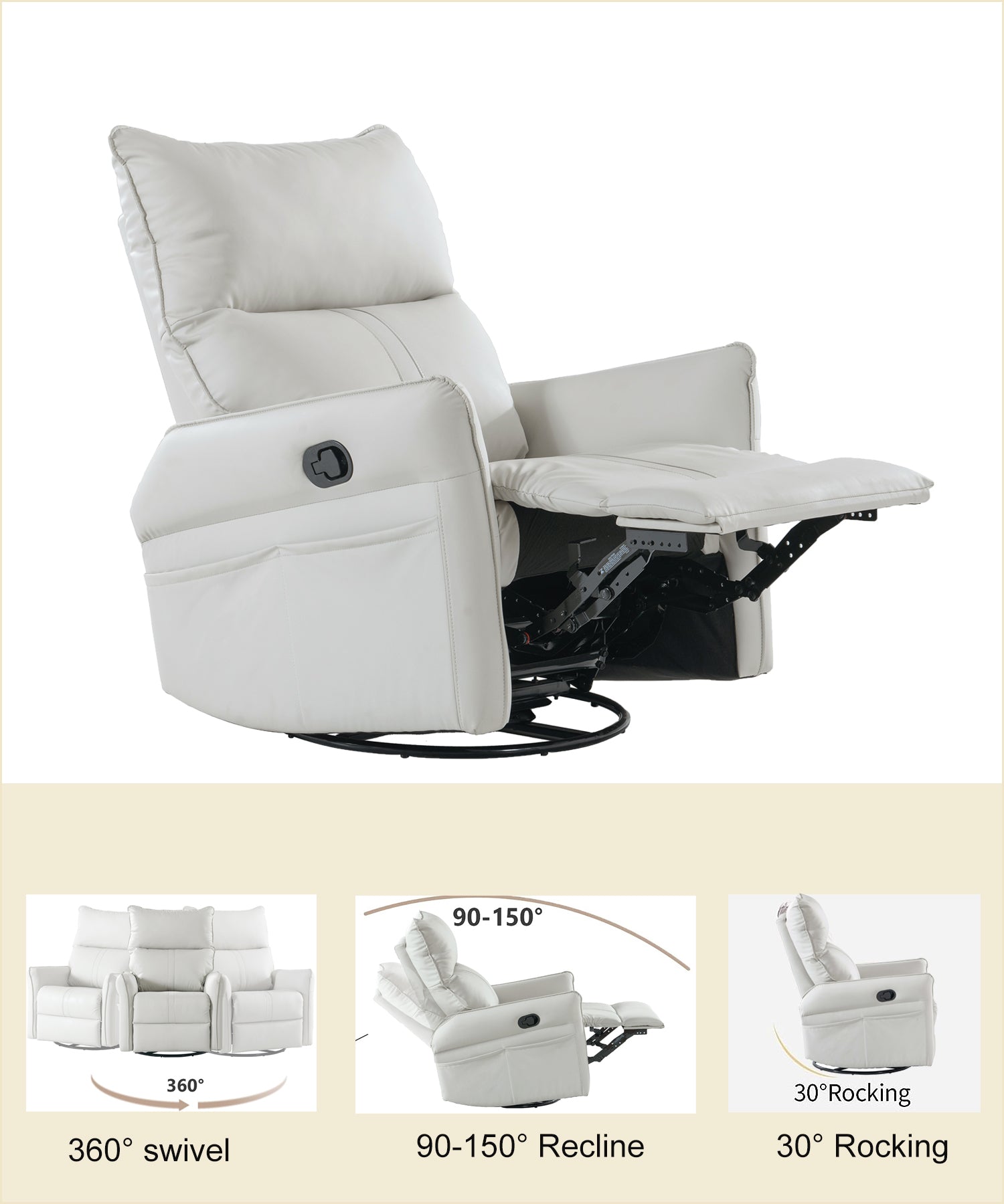 - [Swiveling,Rocking & Reclining] It features 360 degree swivel function for your casually sitting or reclining in the chair, you can rock back and forth while having chats with friends or watching films. You can also recline and stretch your body with a pull buckle at side, and the footrest can be extended and retracted, for your ultimate lounging experience.