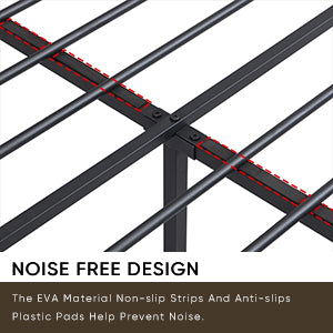 - Sturdy & Noise Free Design: Queen bed frame with headboard and storage made of sturdy metal structure, 15 heavy duty metal slats and 11 support legs provide optimal support for all types of mattresses without the use of box springs. we've added a special silent sponge bar to the center beam of this platform bed to eliminate friction between the metal components to ensure your sleep environment, Sleep or be active in this bed without being disturbed by noise.