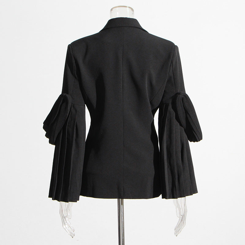 Autumn Niche Design Retro Hong Kong Stitching Ruffle Design Blazer Coat