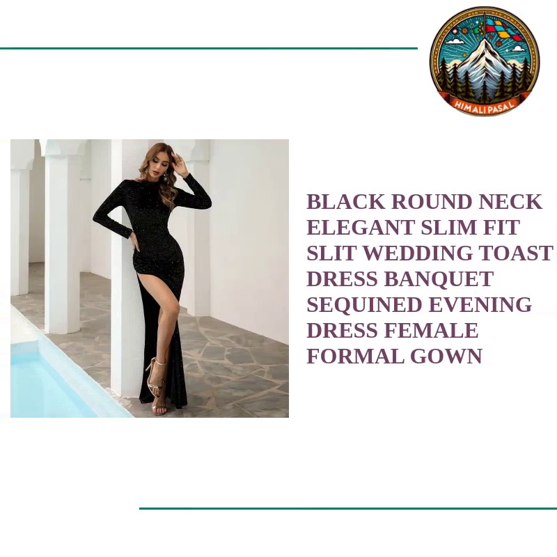 Black round Neck Elegant Slim Fit Slit Wedding Toast Dress Banquet Sequined Evening Dress Female Formal Gown