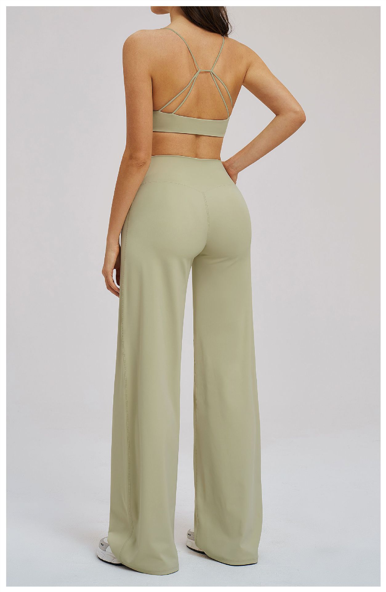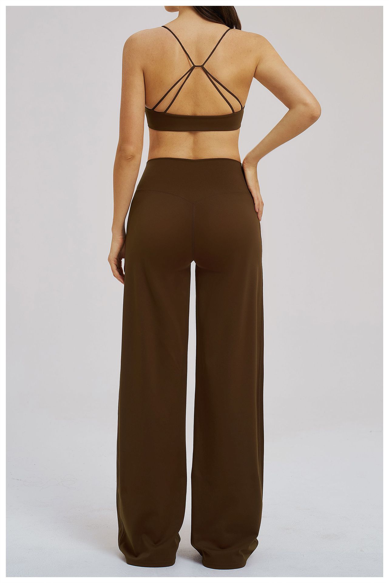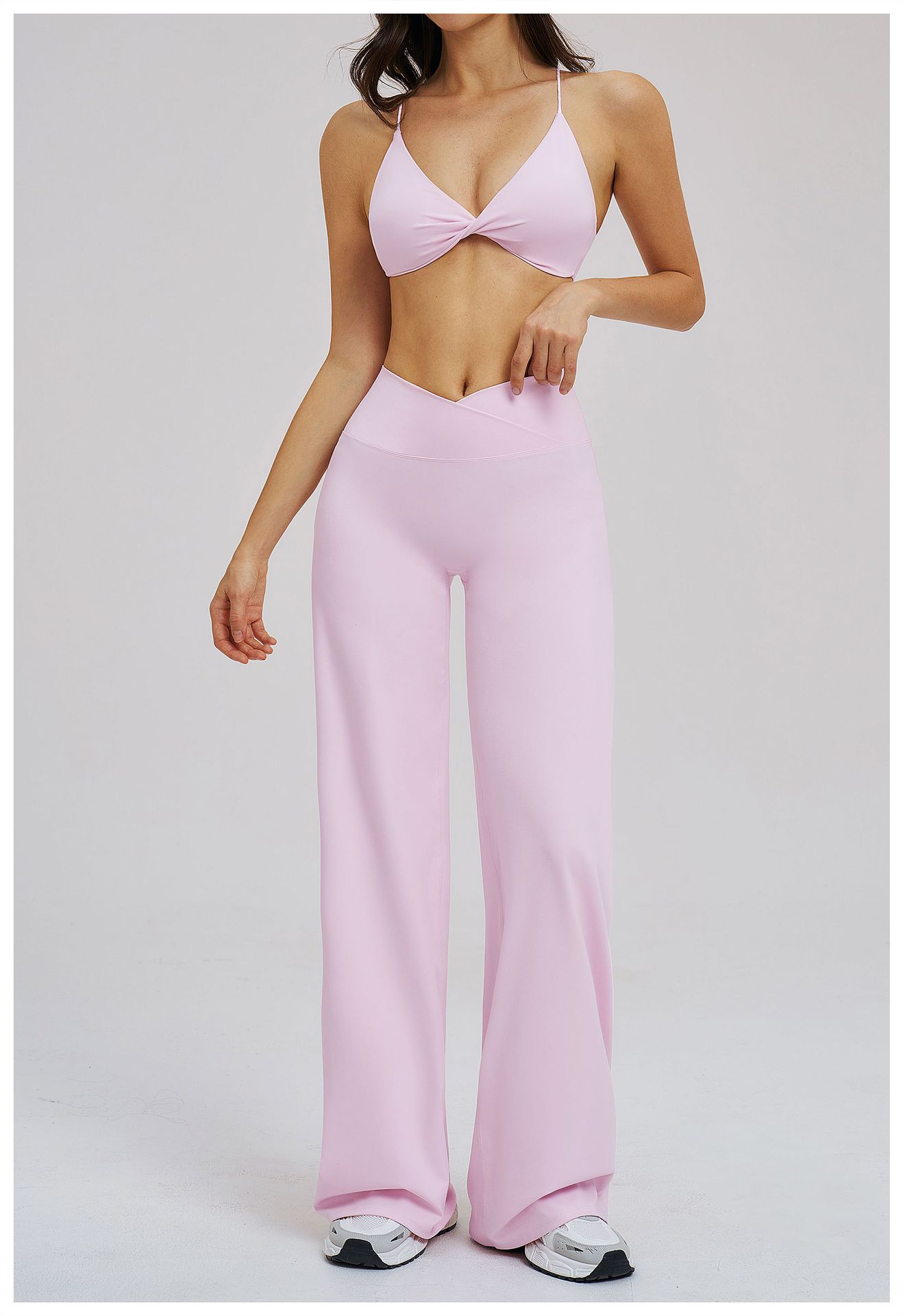 Brushed Yoga Cross Waist Head Sports Wide Legs Fitness Suit Outdoor Running Sports Two Piece Sets