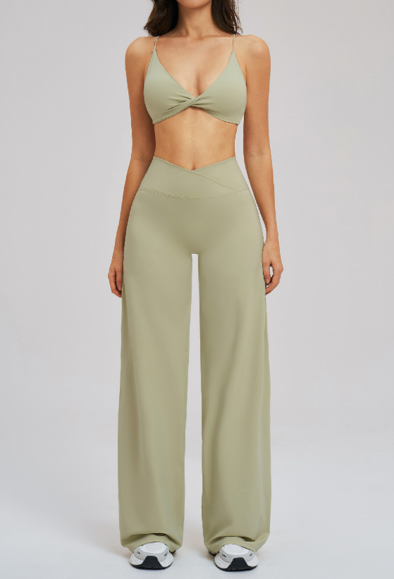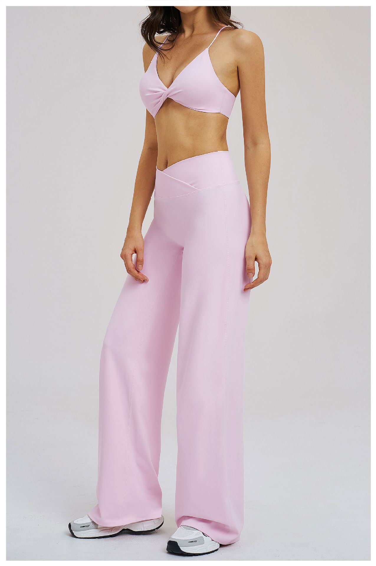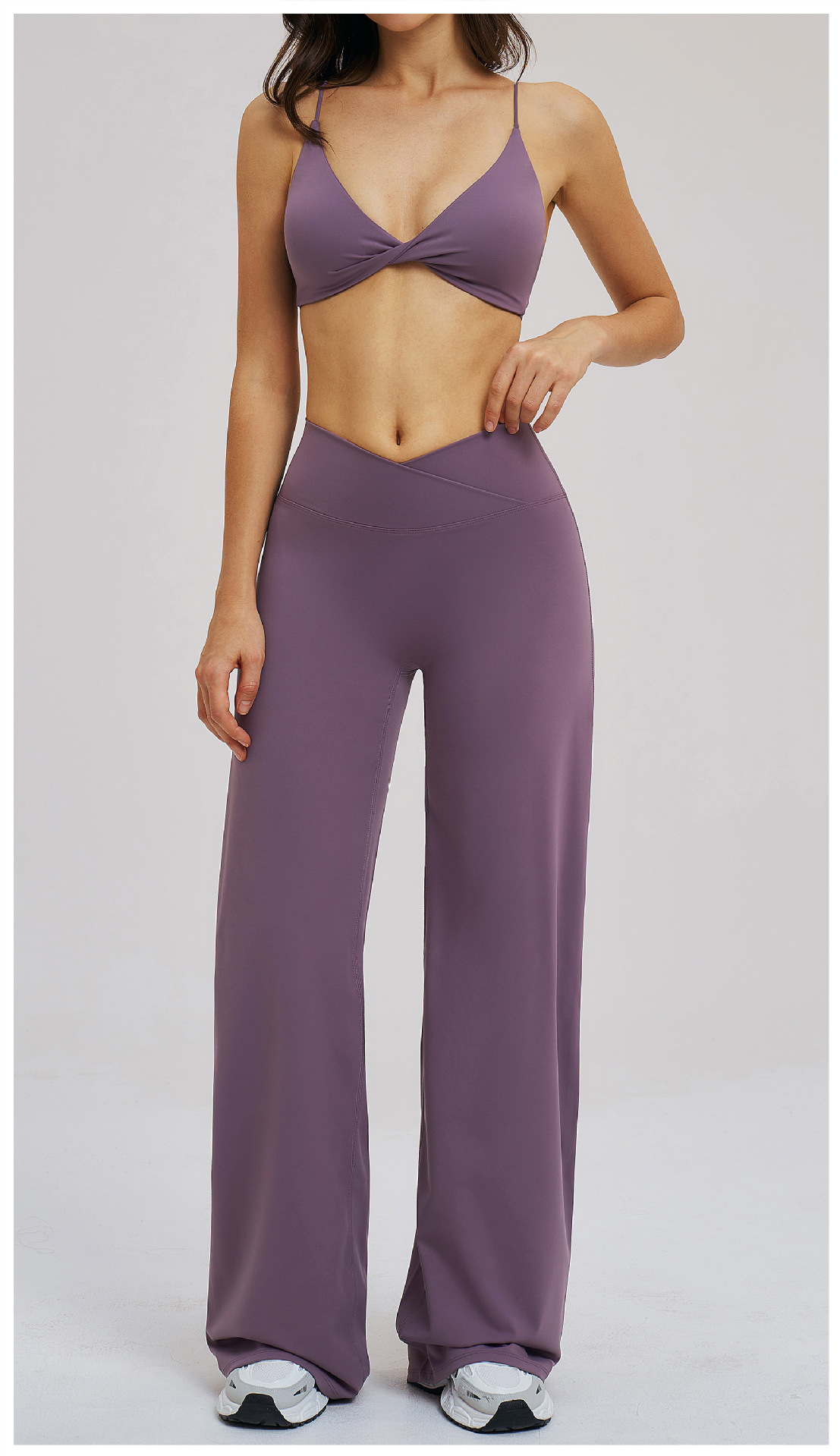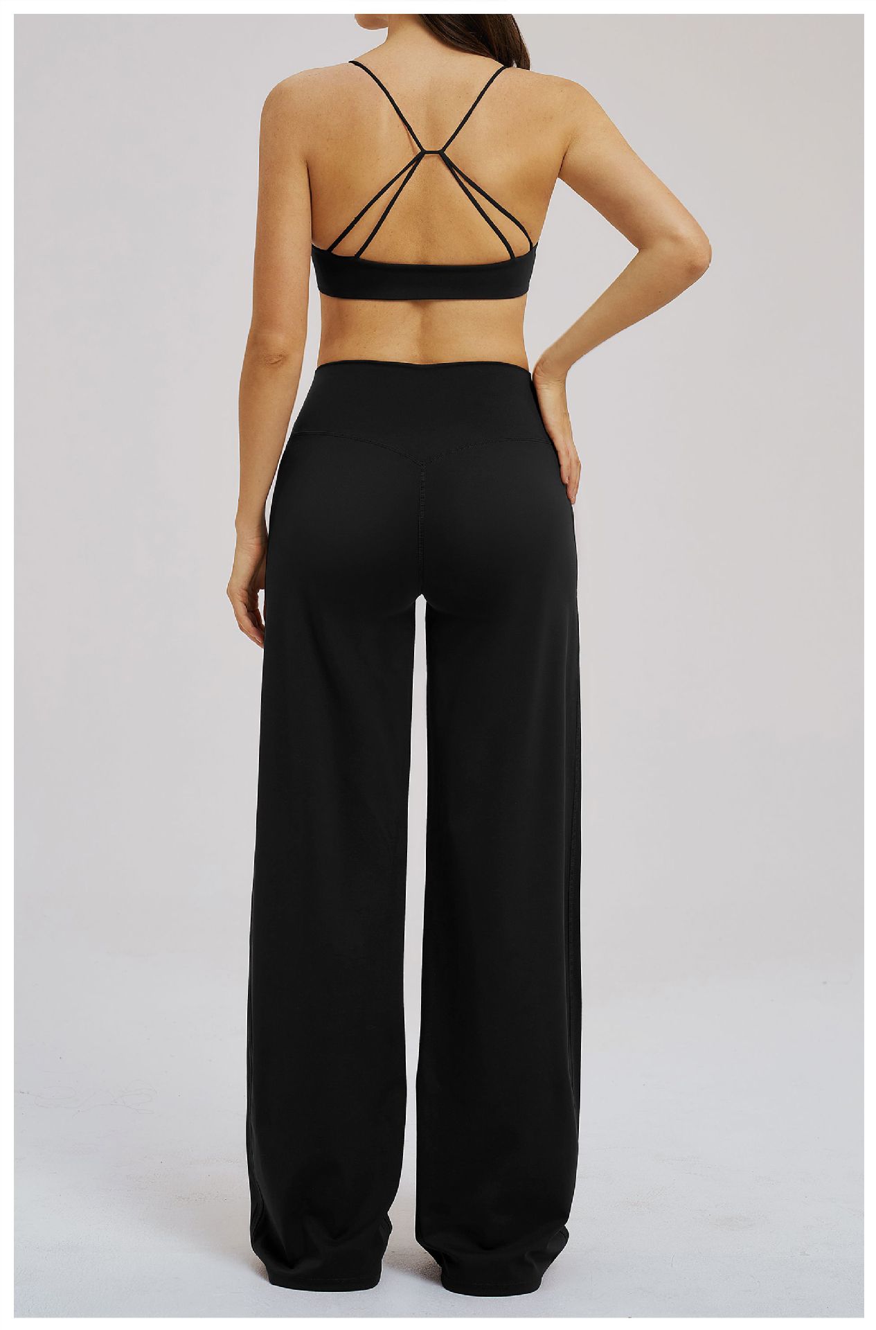 Brushed Yoga Cross Waist Head Sports Wide Legs Fitness Suit Outdoor Running Sports Two Piece Sets