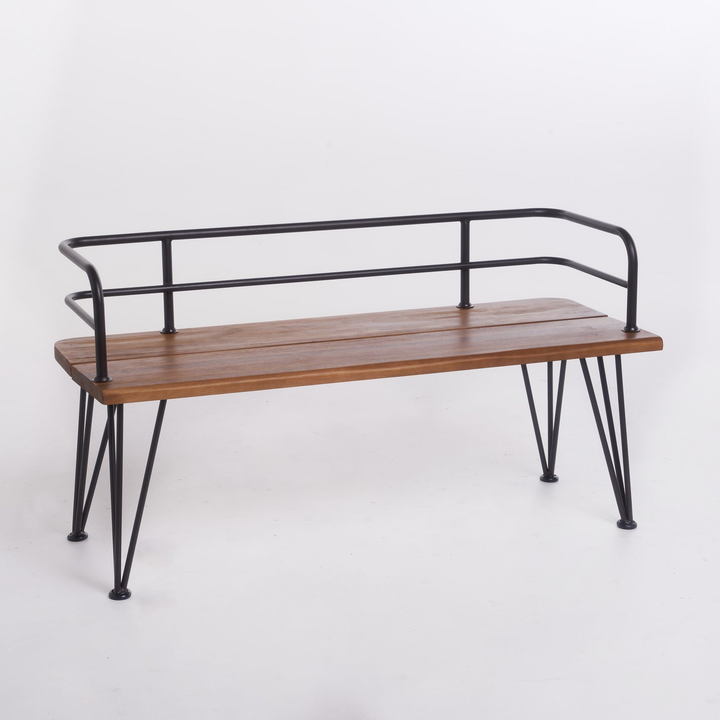- Introduce a classic look with a contemporary twist to your patio or backyard with this solid and handsome acacia wood bench.