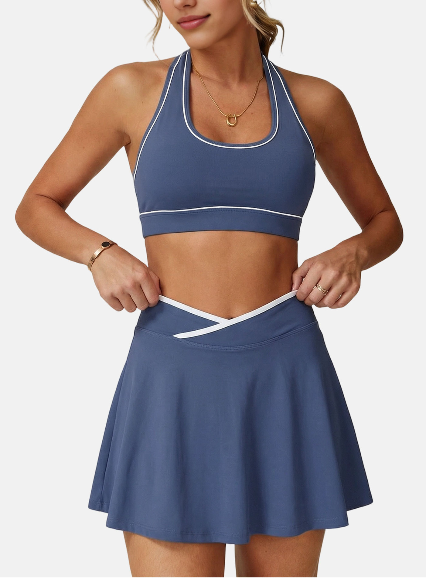 Casual Sports Short Skirt Women Slimming Cross V Waist Tennis Skirt Stitching Outdoor Sports Yoga Skirts (Runs Small)