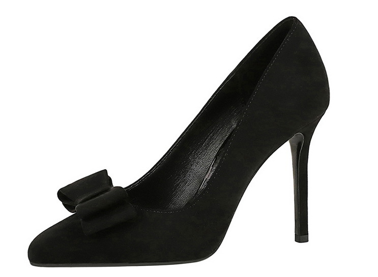 Cocktail High Heels Stiletto Heel Shallow Mouth Suede round Toe Bow High Heel Pumps Women Shoes