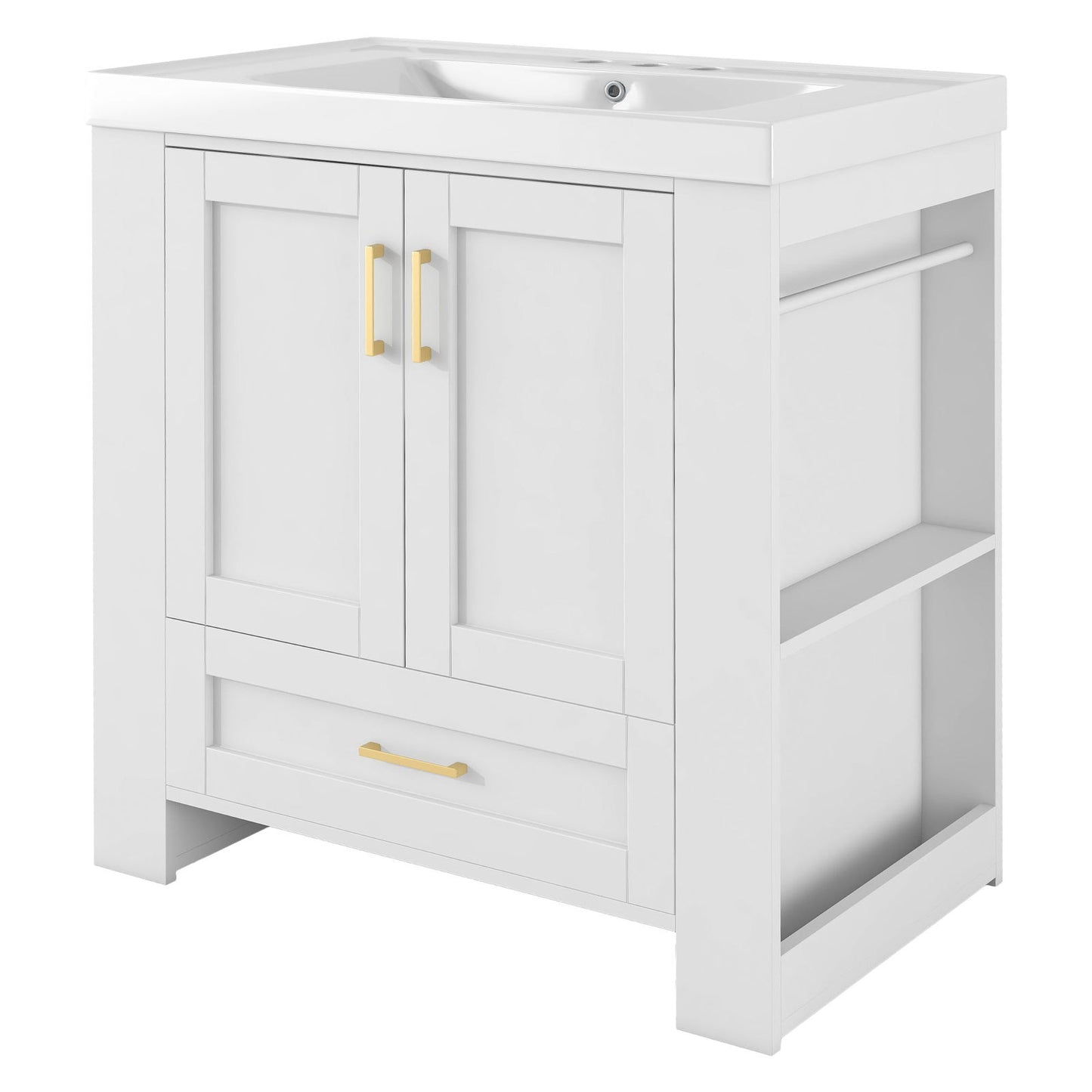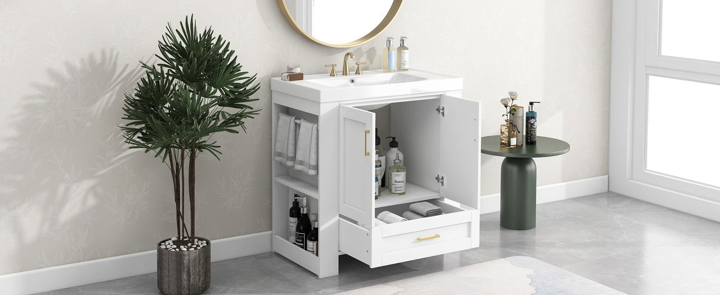 30'' Bathroom Vanity with Seperate Basin Sink, Modern Bathroom Storage Cabinet with Double-sided Storage Shelf, Freestanding Bathroom Vanity Cabinet with Single Sink