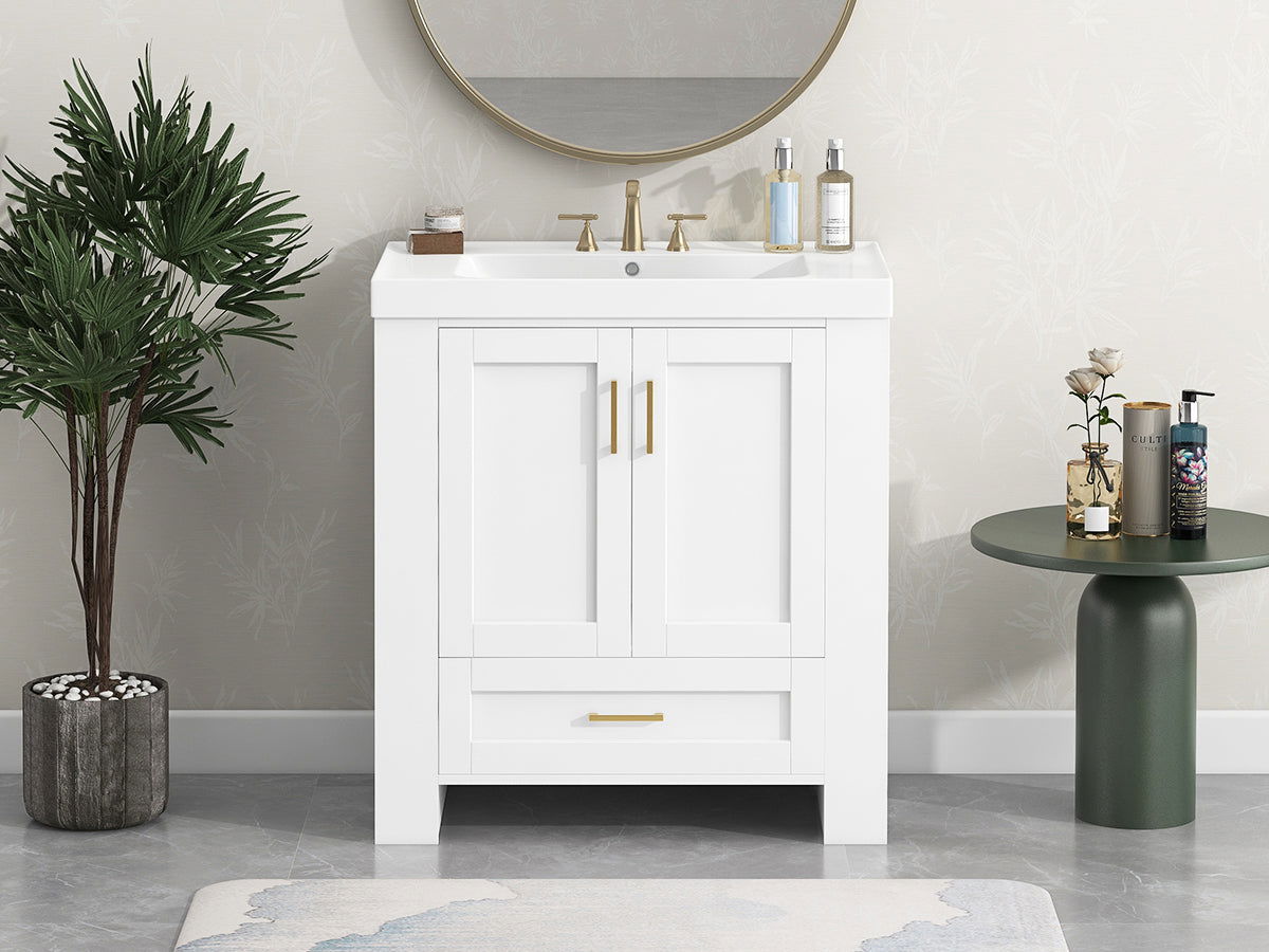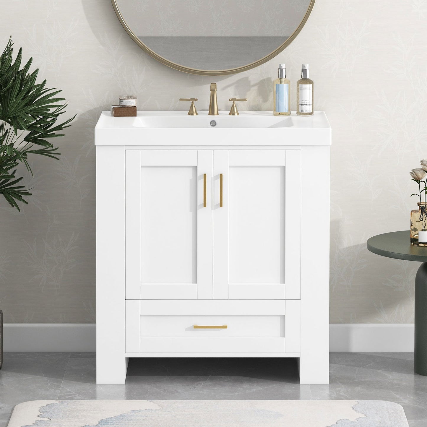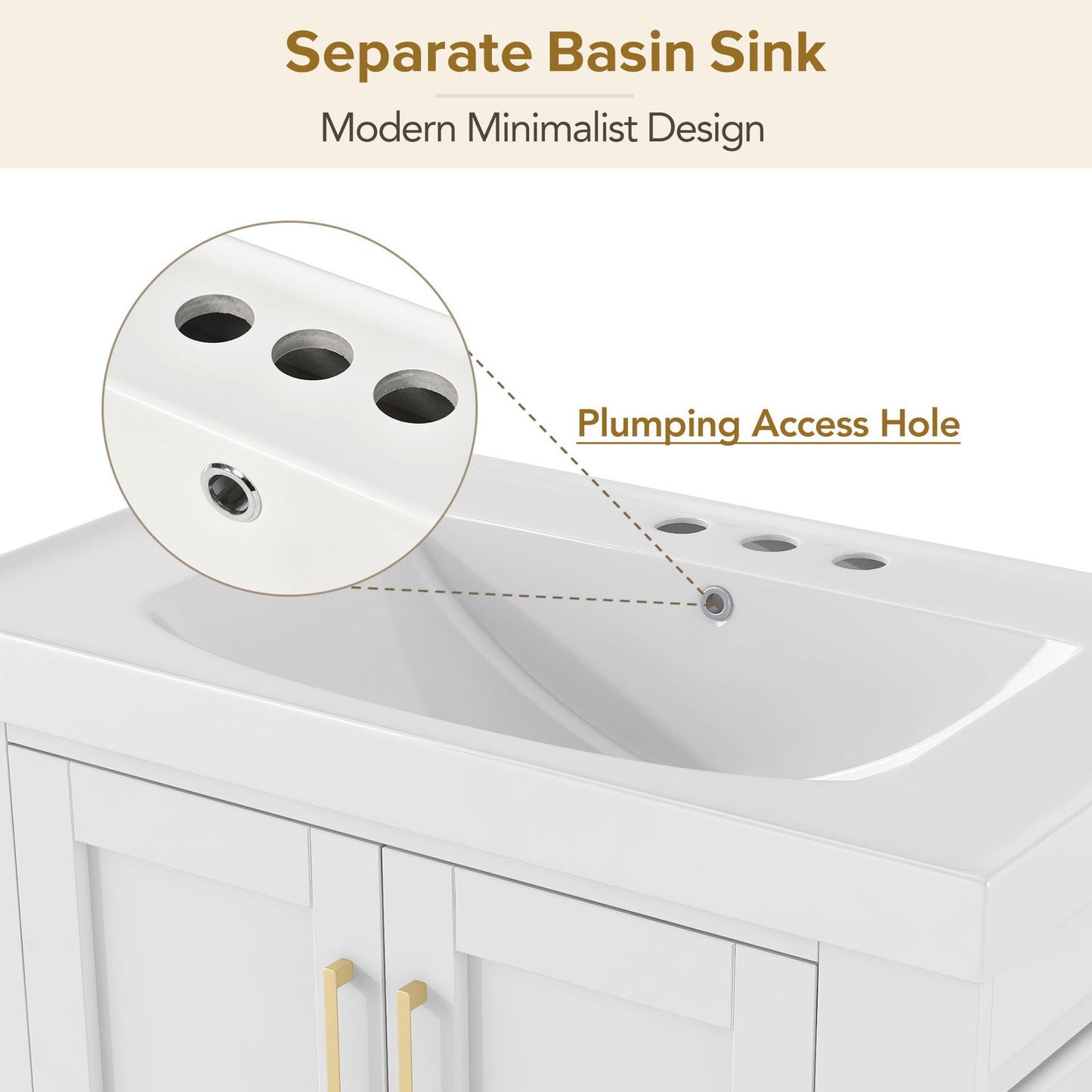 - This bathroom vanity is equipped with a three-hole basin with a diameter of 32mm. Suitable for faucets with a diameter not exceeding 32mm.