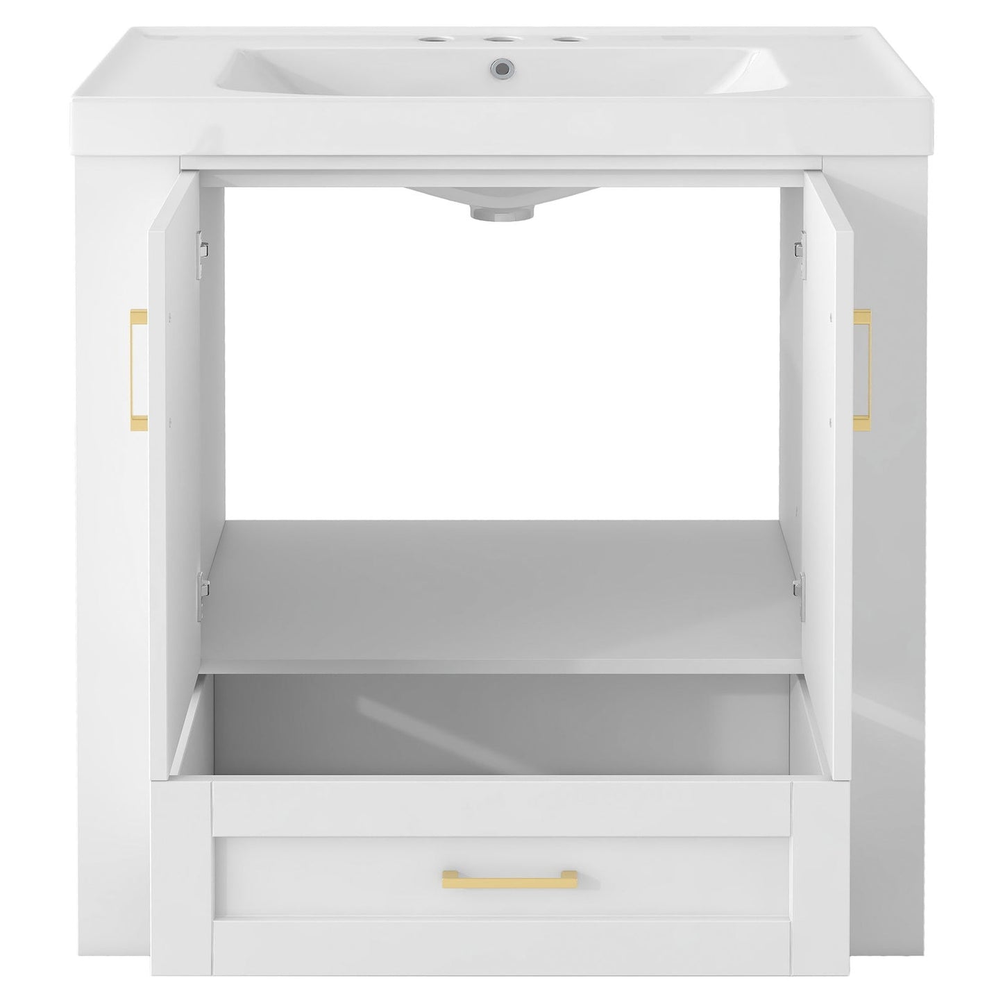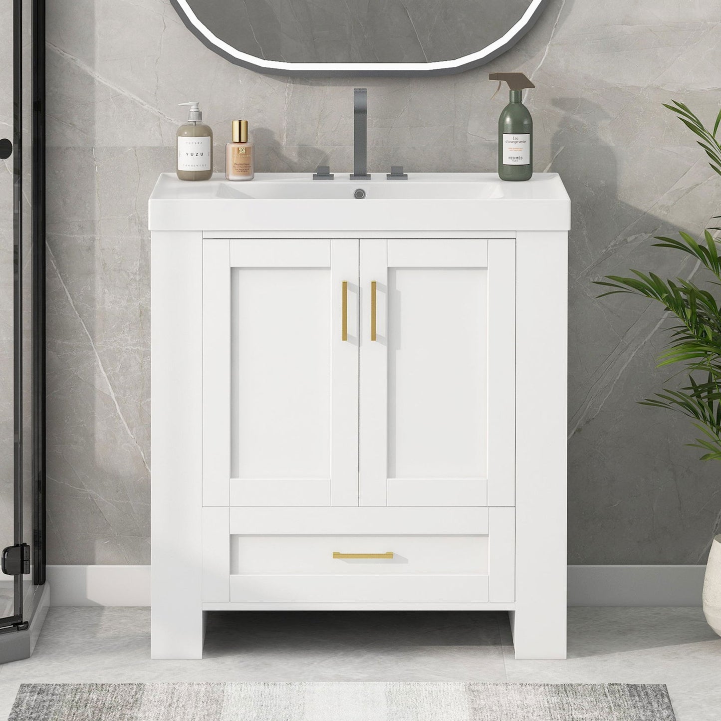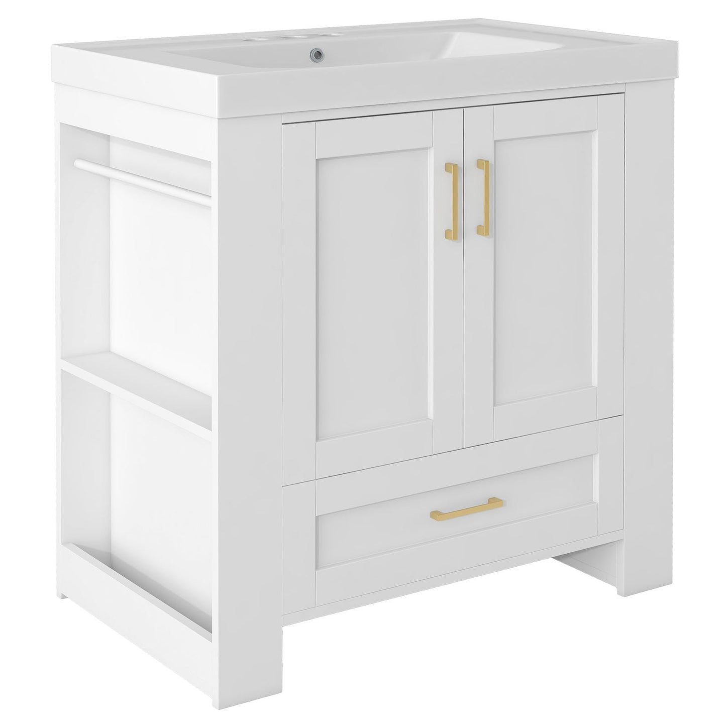 - This bathroom vanity is equipped with a three-hole basin with a diameter of 32mm. Suitable for faucets with a diameter not exceeding 32mm.