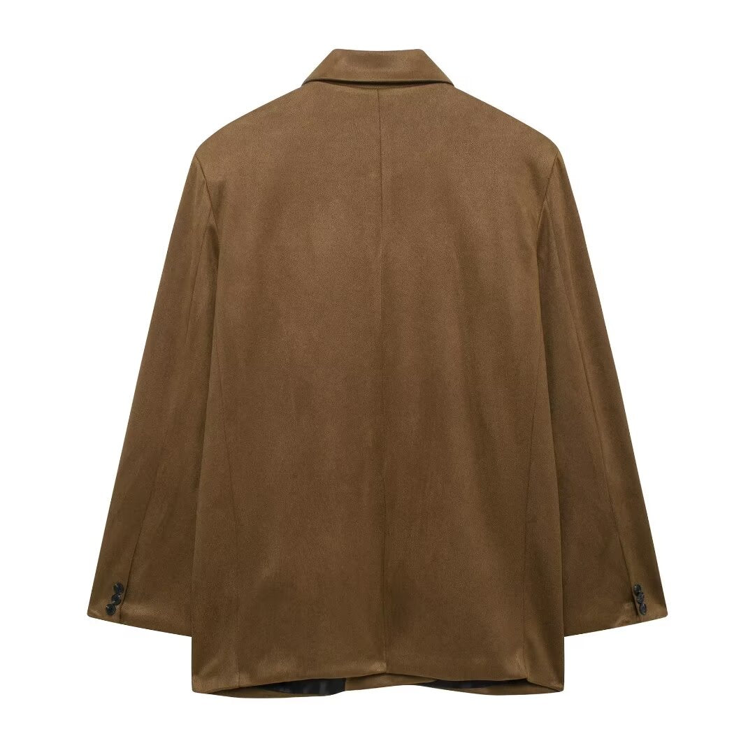 Fall Fashionable All Matching Suede Textured Leather Leather Coat Women Clothing