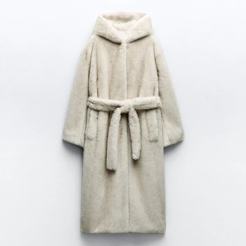 Fall Winter Hooded Faux Fur Coat Women Long Brand Mink Fur Leather Fur Coat Soft Environmental Fur Coat