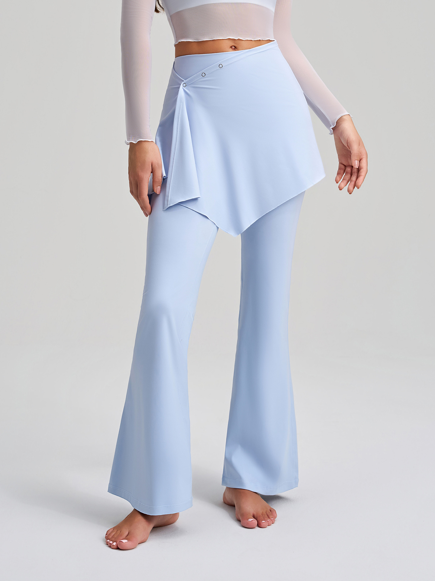 Faux Two Piece Yoga Pants Fart Curtain Detachable Anti Embarrassment Bootcut Trousers Women High Waist Drooping Bell Bottom Pants