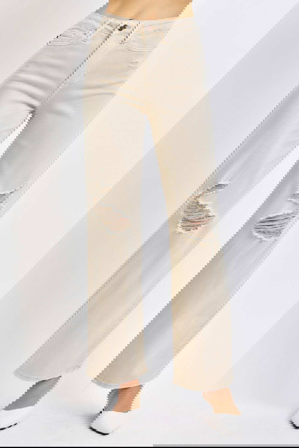 Judy Blue Full Size High Waist Distressed Wide Leg Jeans