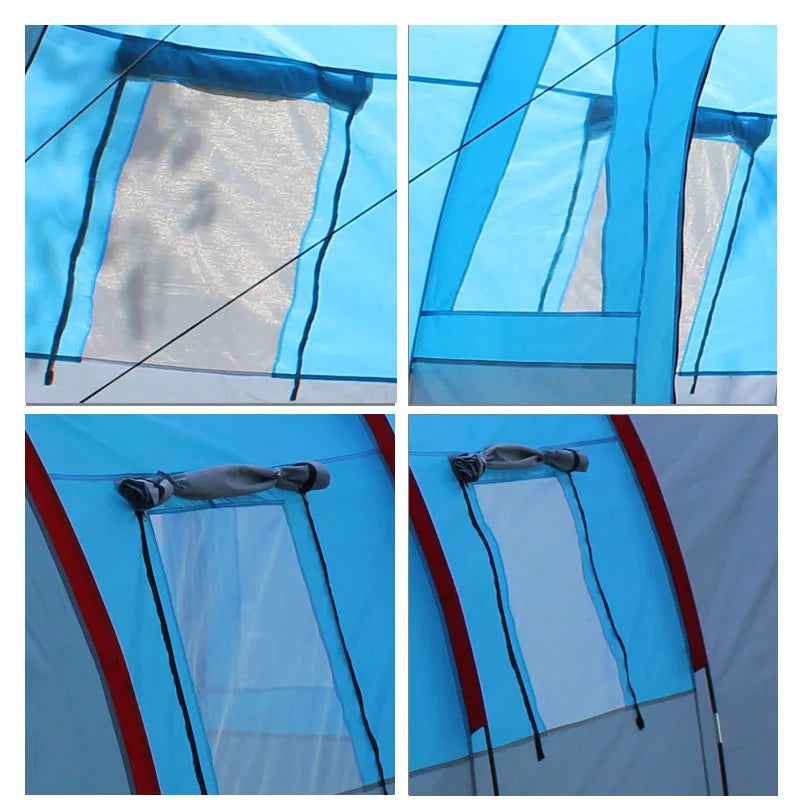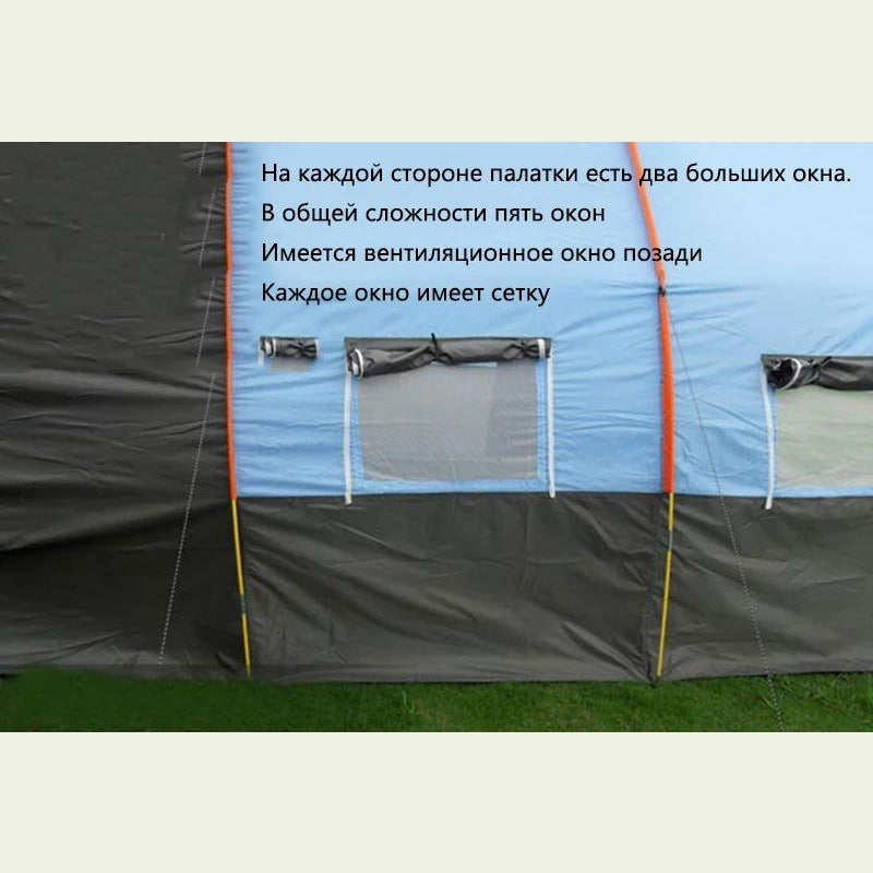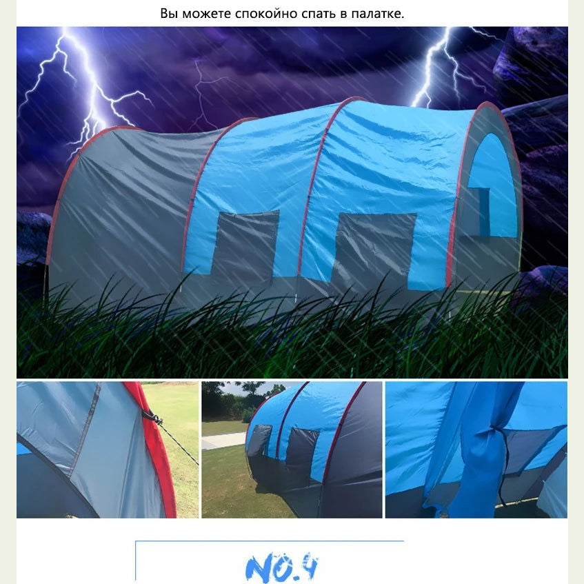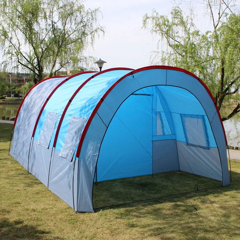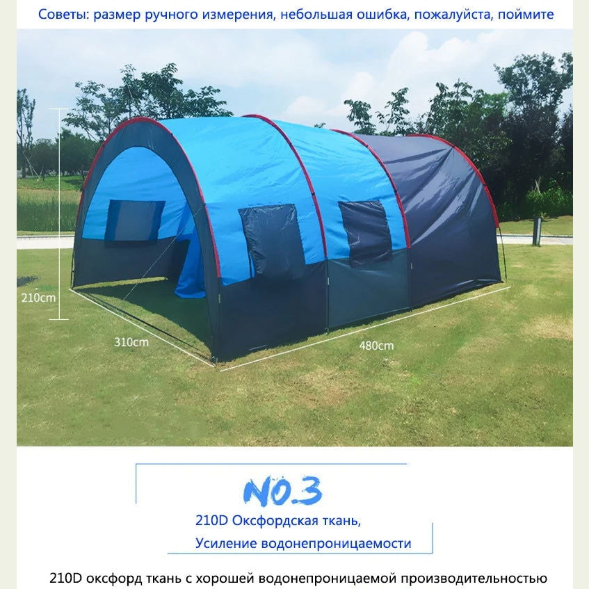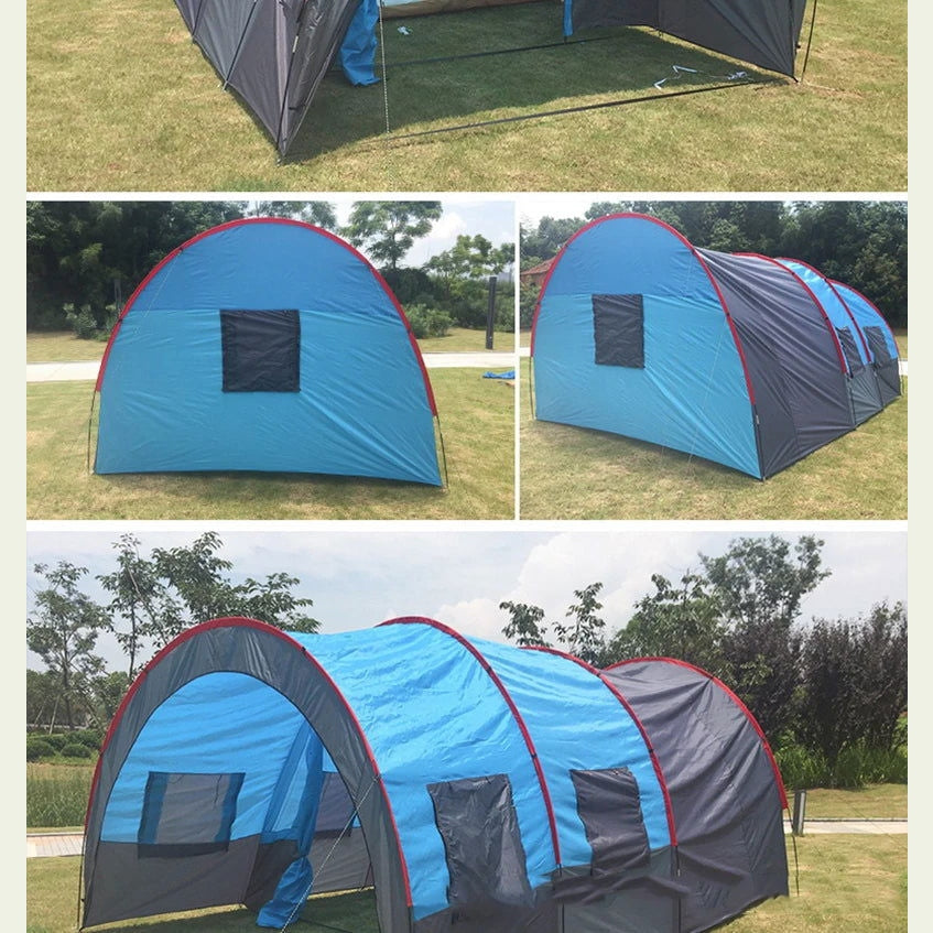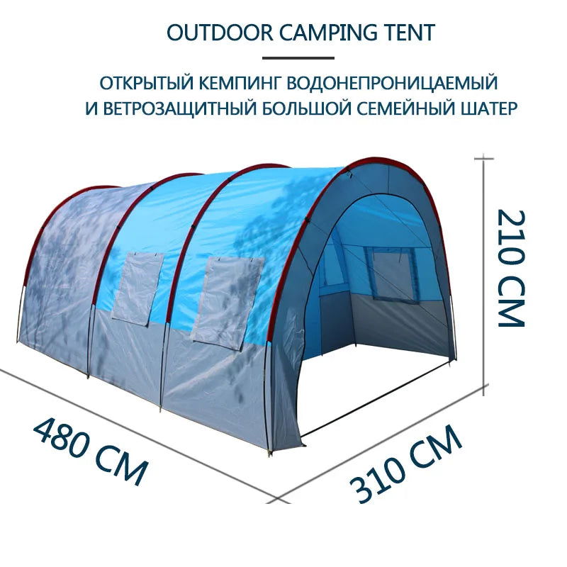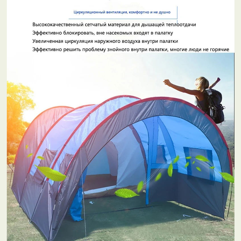 Large Camping Tent Waterproof Canvas Fiberglass 8 10 Family Tunnel Equipment Outdoor Mountaineering Party Gift Uv Protection