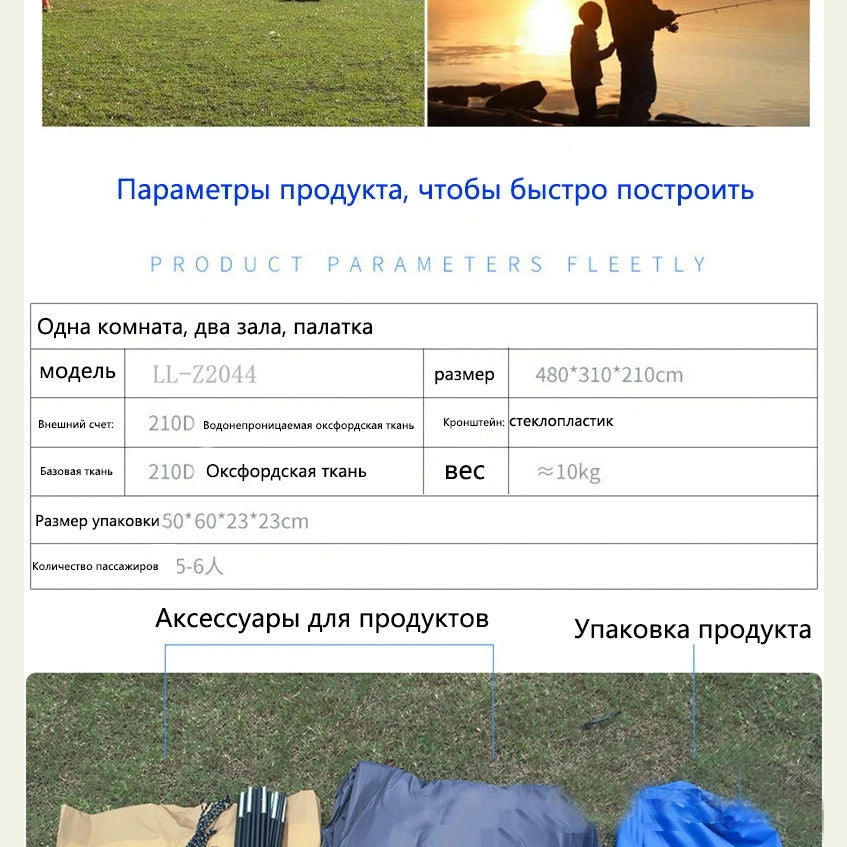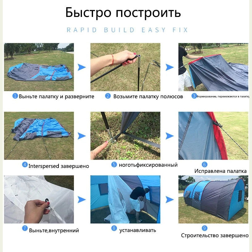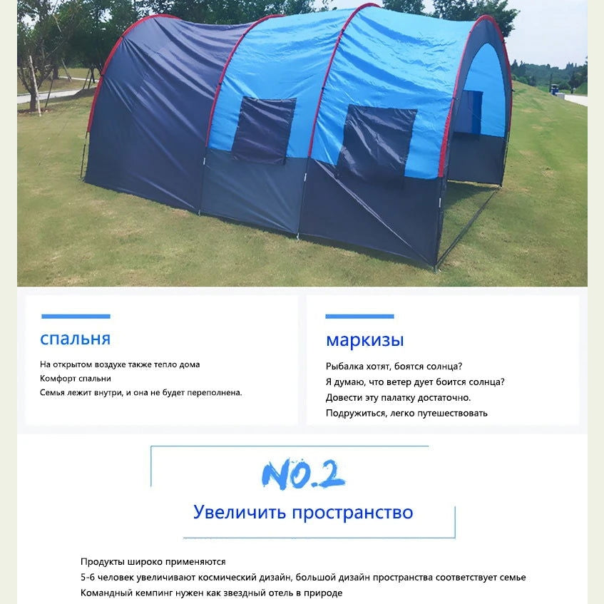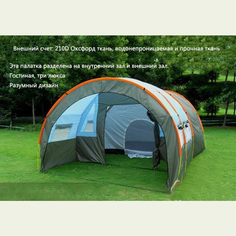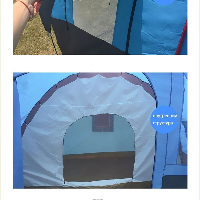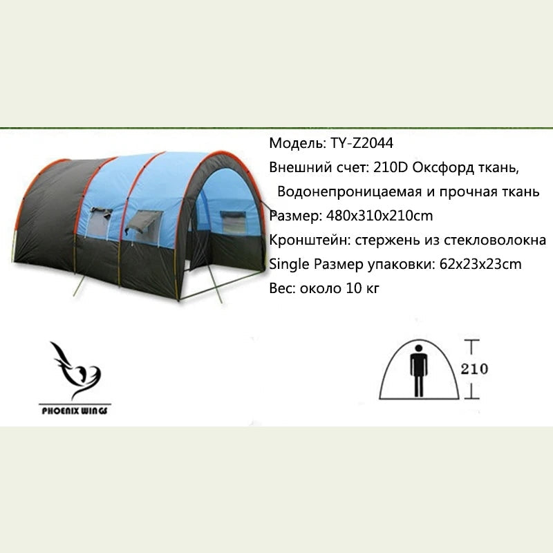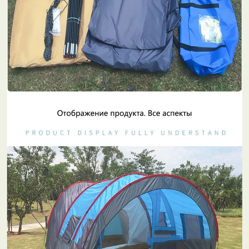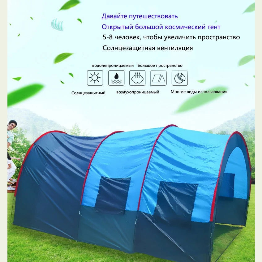 Large Camping Tent Waterproof Canvas Fiberglass 8 10 Family Tunnel Equipment Outdoor Mountaineering Party Gift Uv Protection